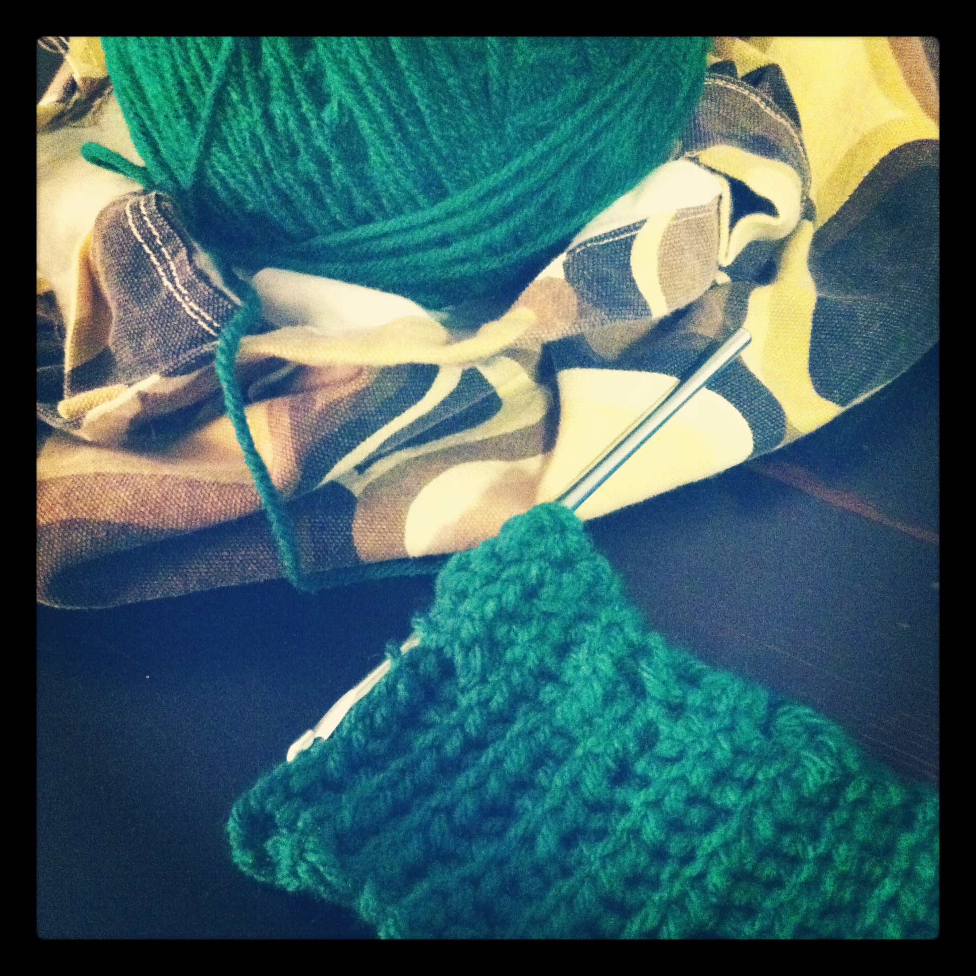 Last October I picked up a scarf kit, and slowly taught myself to crochet. It wasn’t too pretty at first, but I kept at it.