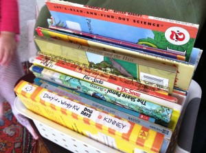 The kids decided to play library at home, and we went upstairs to gather a bin of books. Thade picked out a few chapter books, and we got lots of little books for Dylan and Agnes.