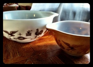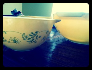 I came home with a few “new”vintage pieces too. James got me a set of yellow Pyrex nesting bowls. They look so cheery in the kitchen.
