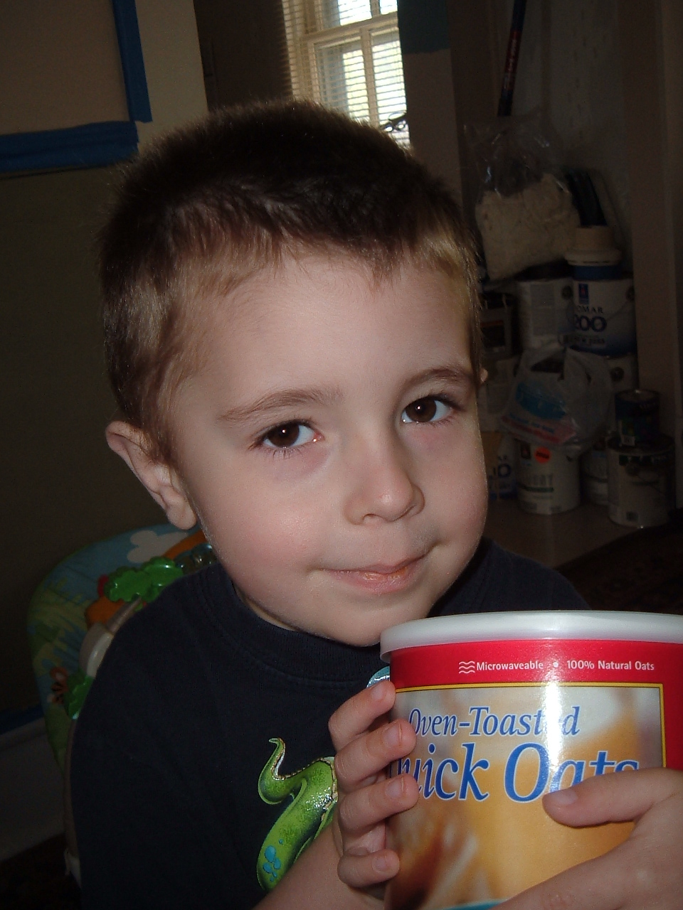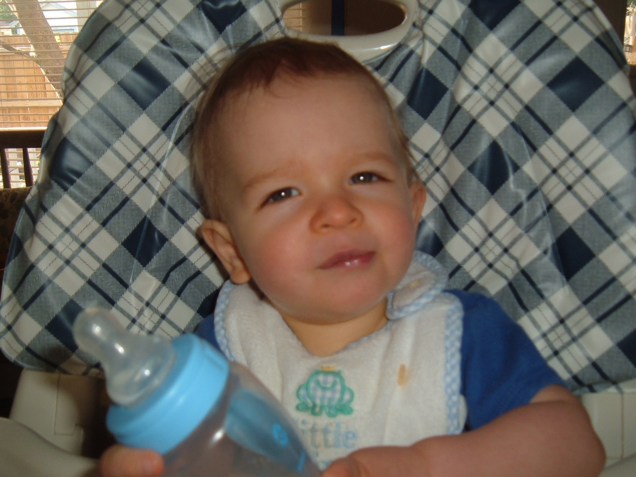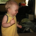 I made him Applesauce with Oatmeal at breakfast, he tried a bite or two and quickly turned his head away. When lunchtime came around I made mini-pasta shells with peas and corn, once again he wasn’t a fan, but he did have a fun time smashing peas into his hair. I’ll be steaming up some Sweet Potatoes tomorrow, we’ll see how it goes 😉