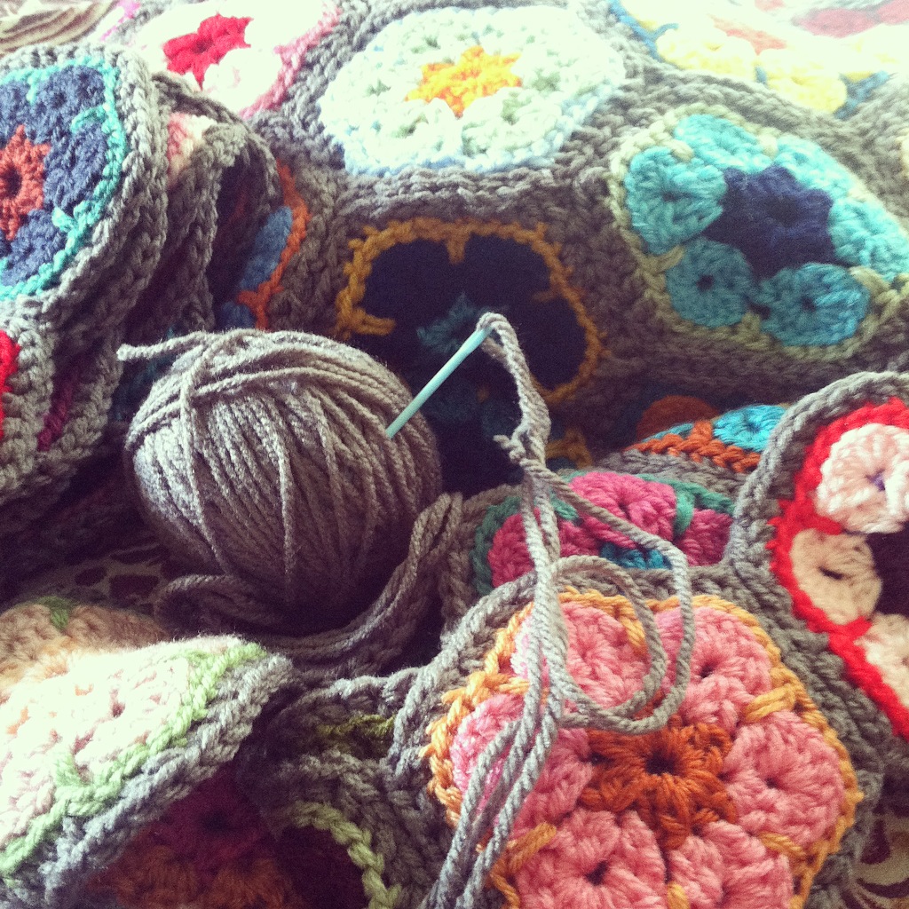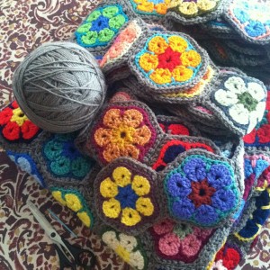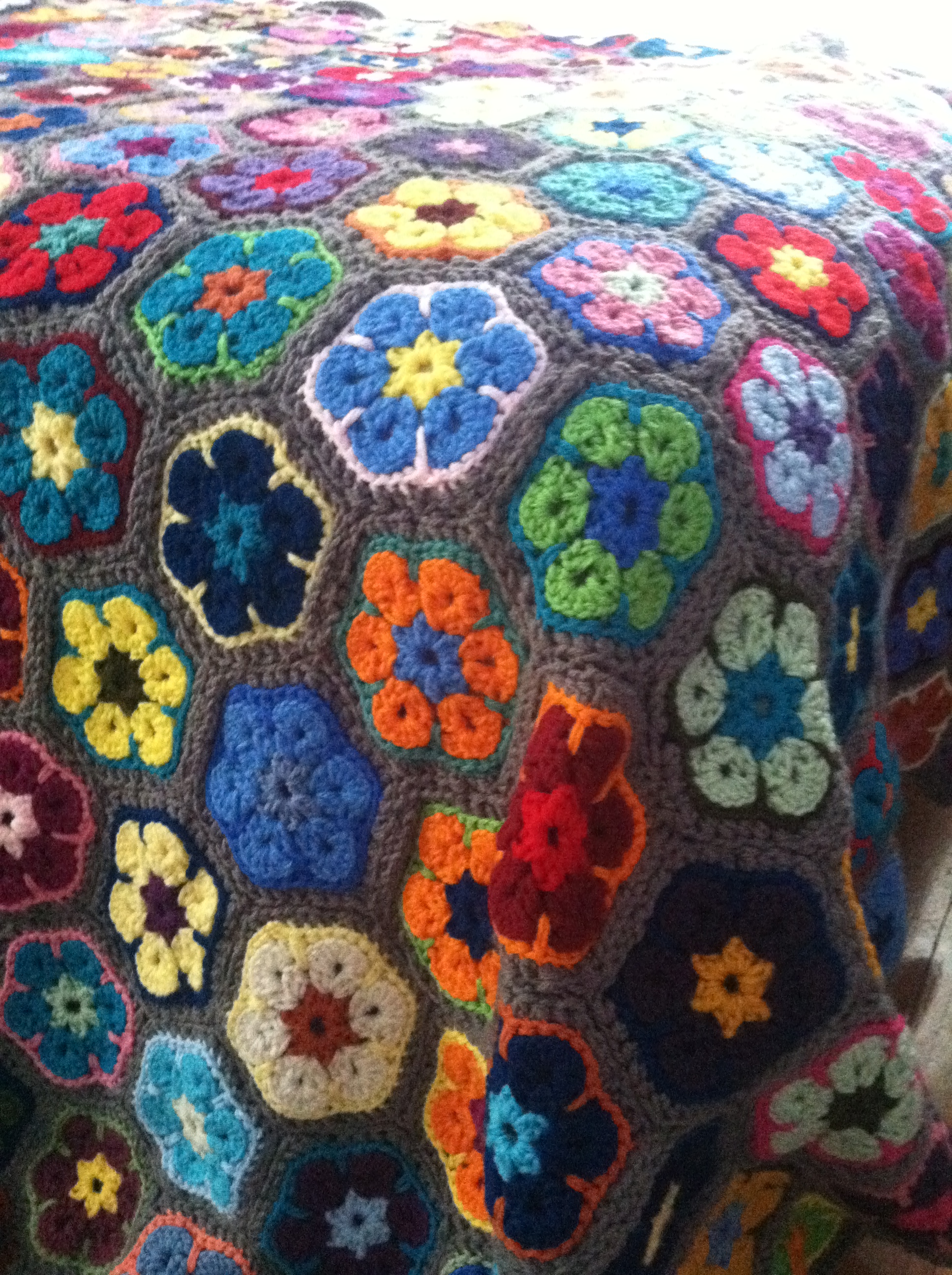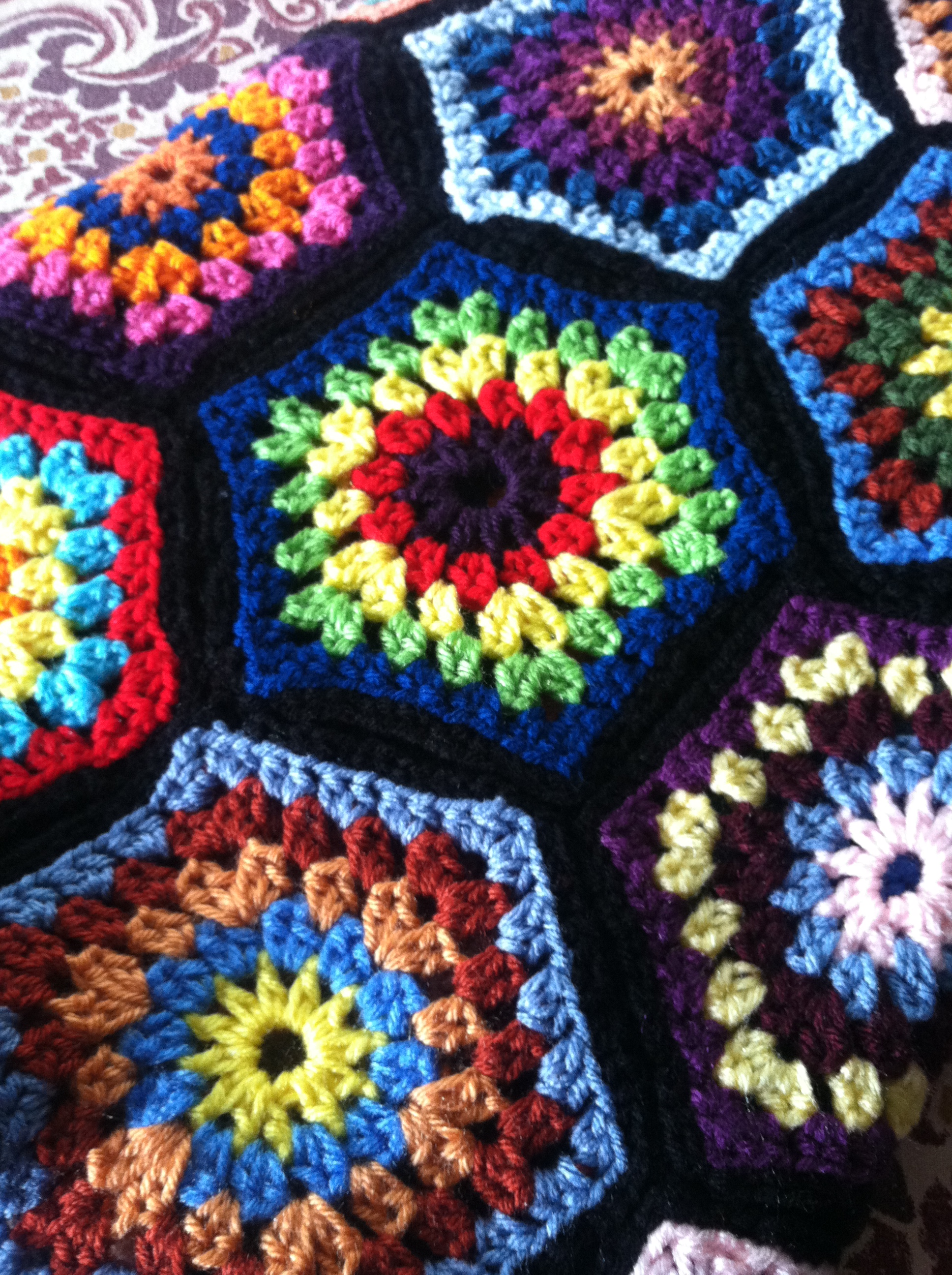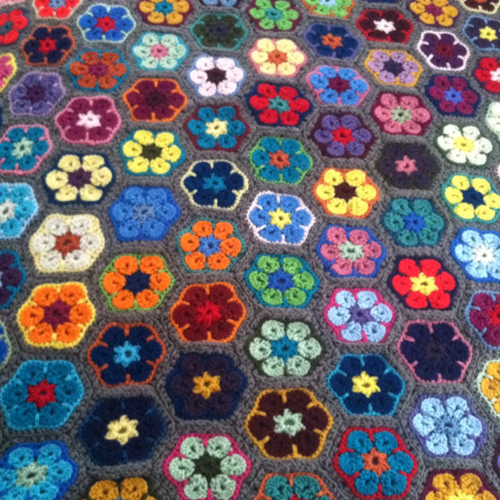 I also finished the multi-hued Hexagon blanket.
