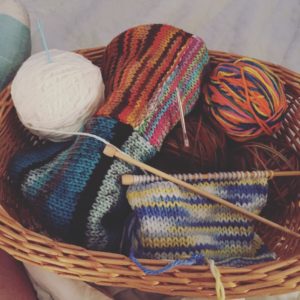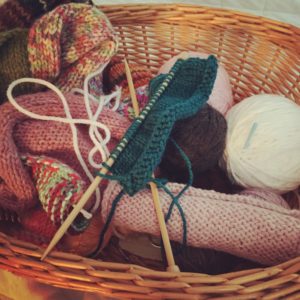 My knitting basket holds a project based on one of my favorite books. Yes, I am that big of a nerd.
