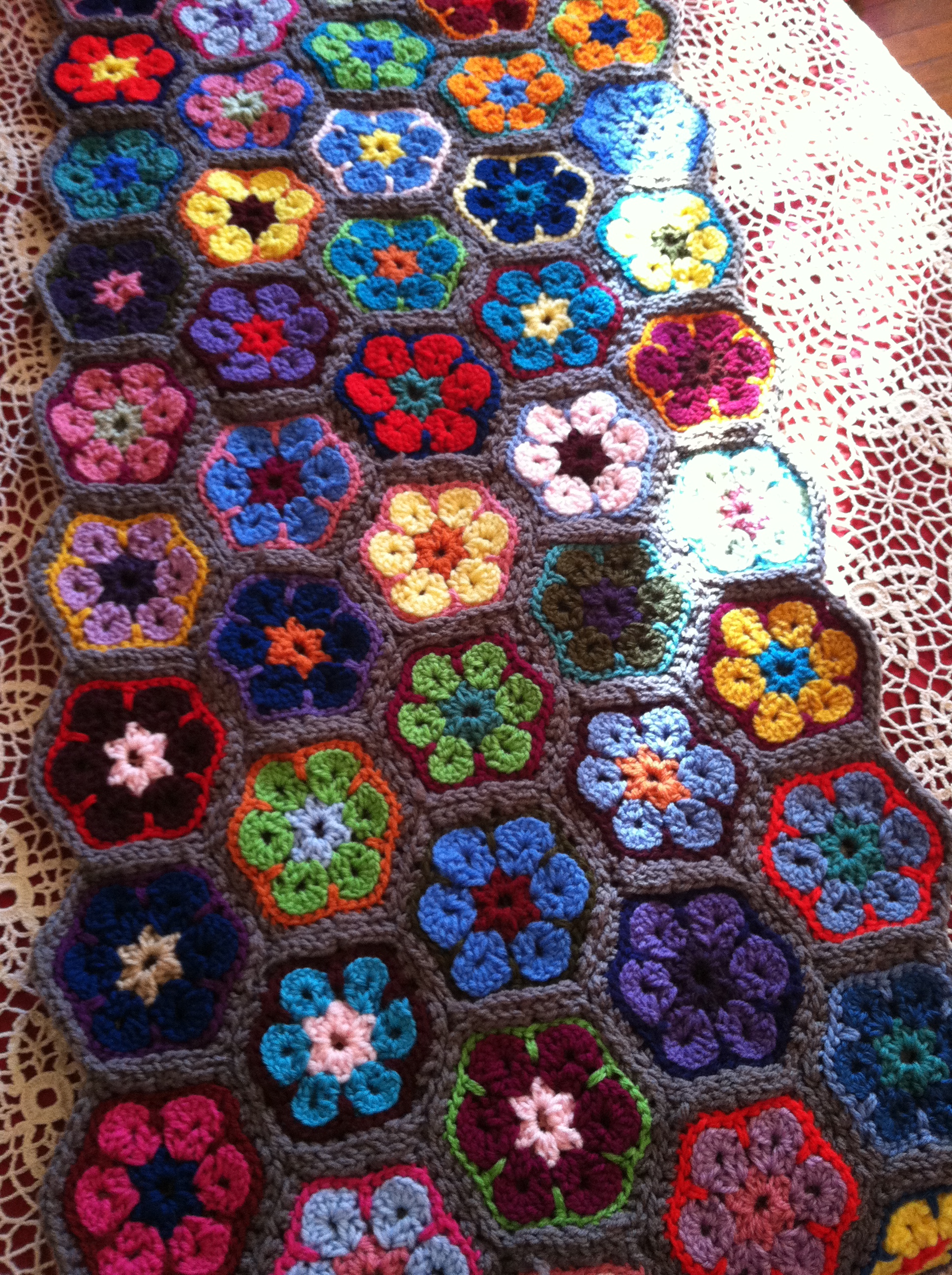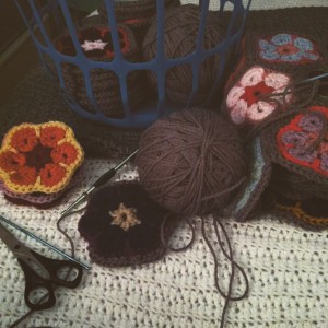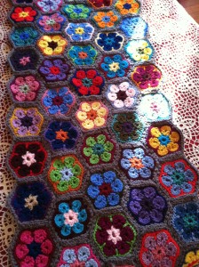 The African Flowers blanket is coming along. I’m one third of the way complete with the crochet work.