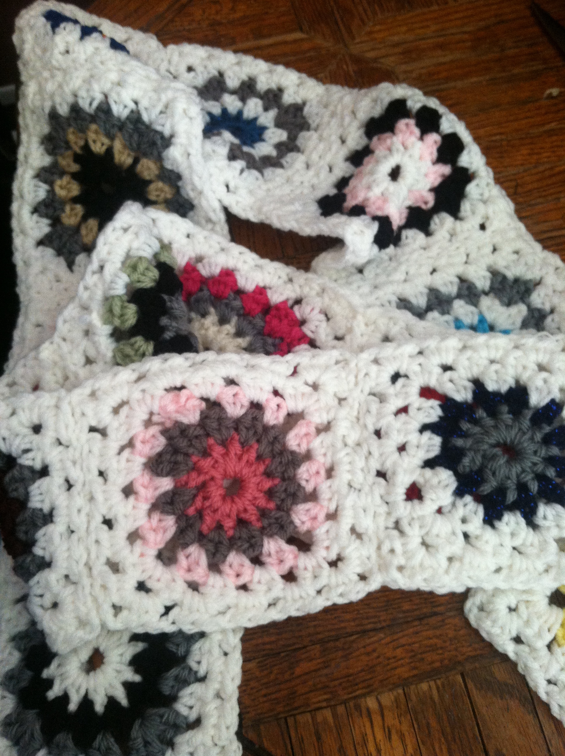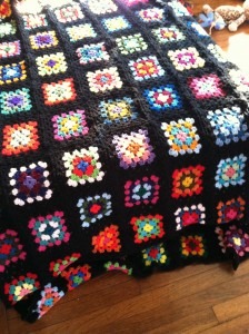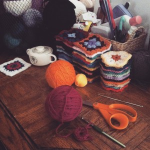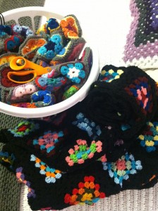 The mod granny-square blanket is almost complete. I have just two more rows of granny-squares to go.