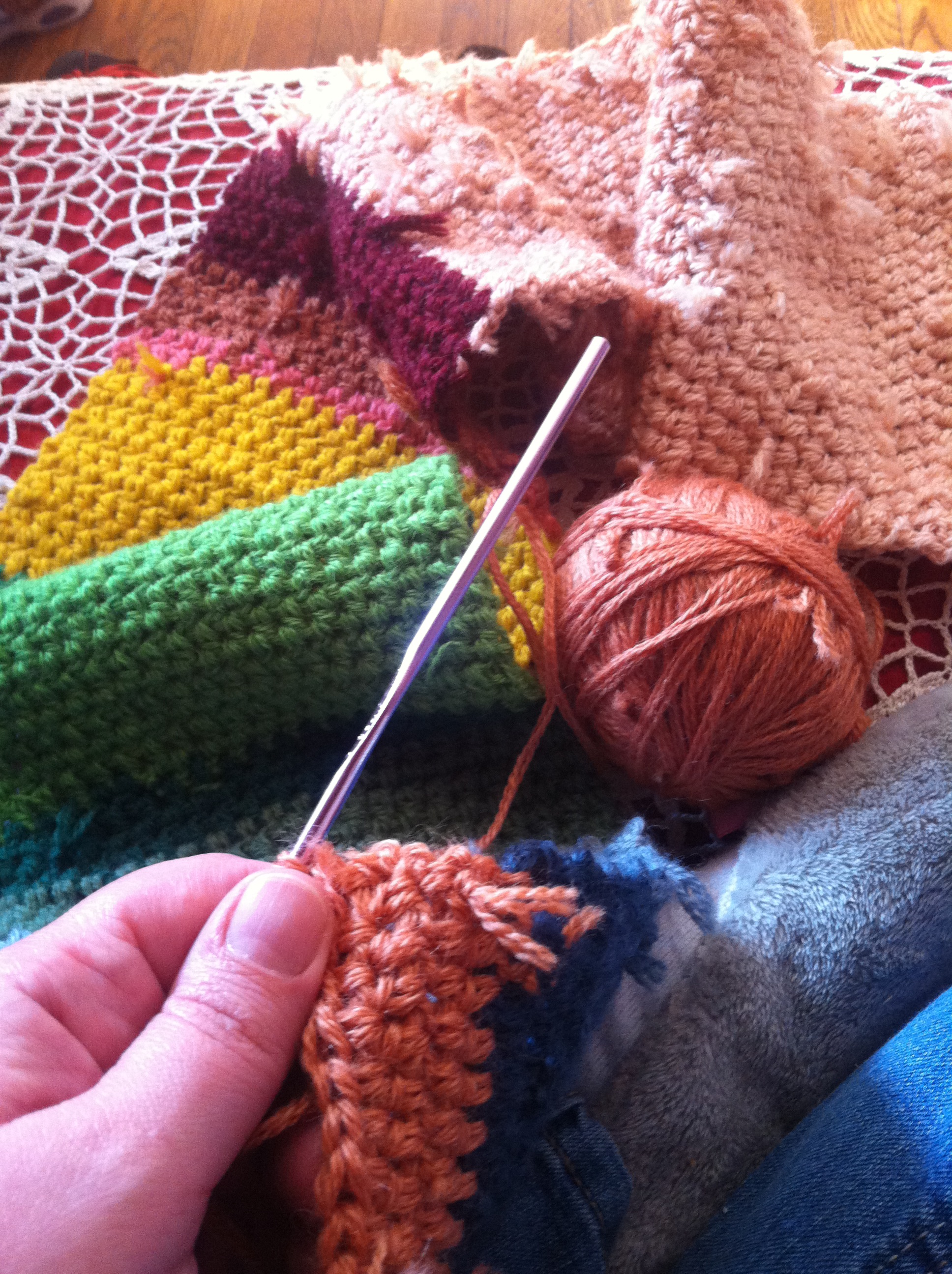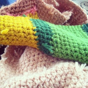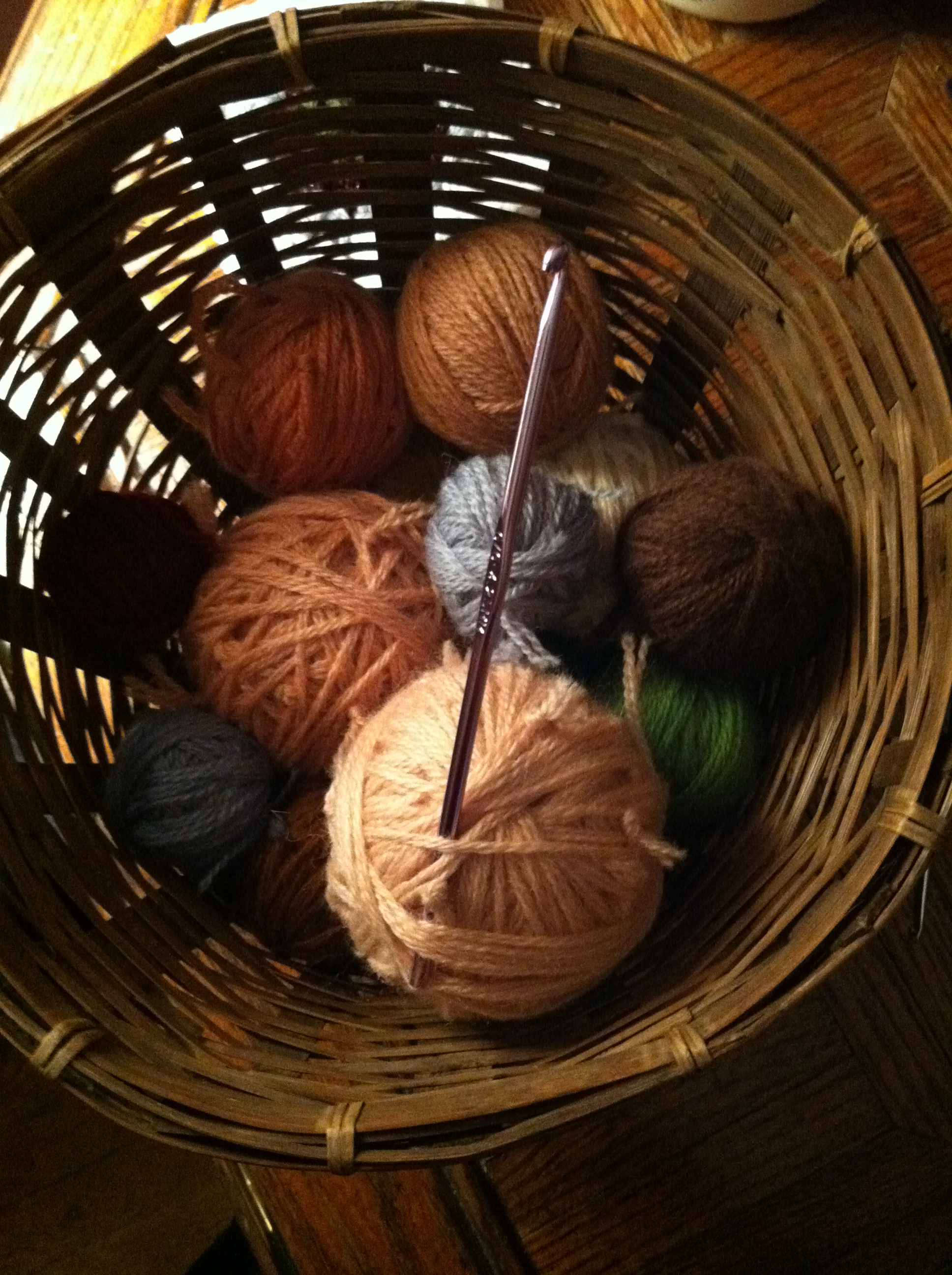 I had this funny stash of tapestry wool that I had picked up at the antique store. I decided to gather up all of the wool, and make a scarf.