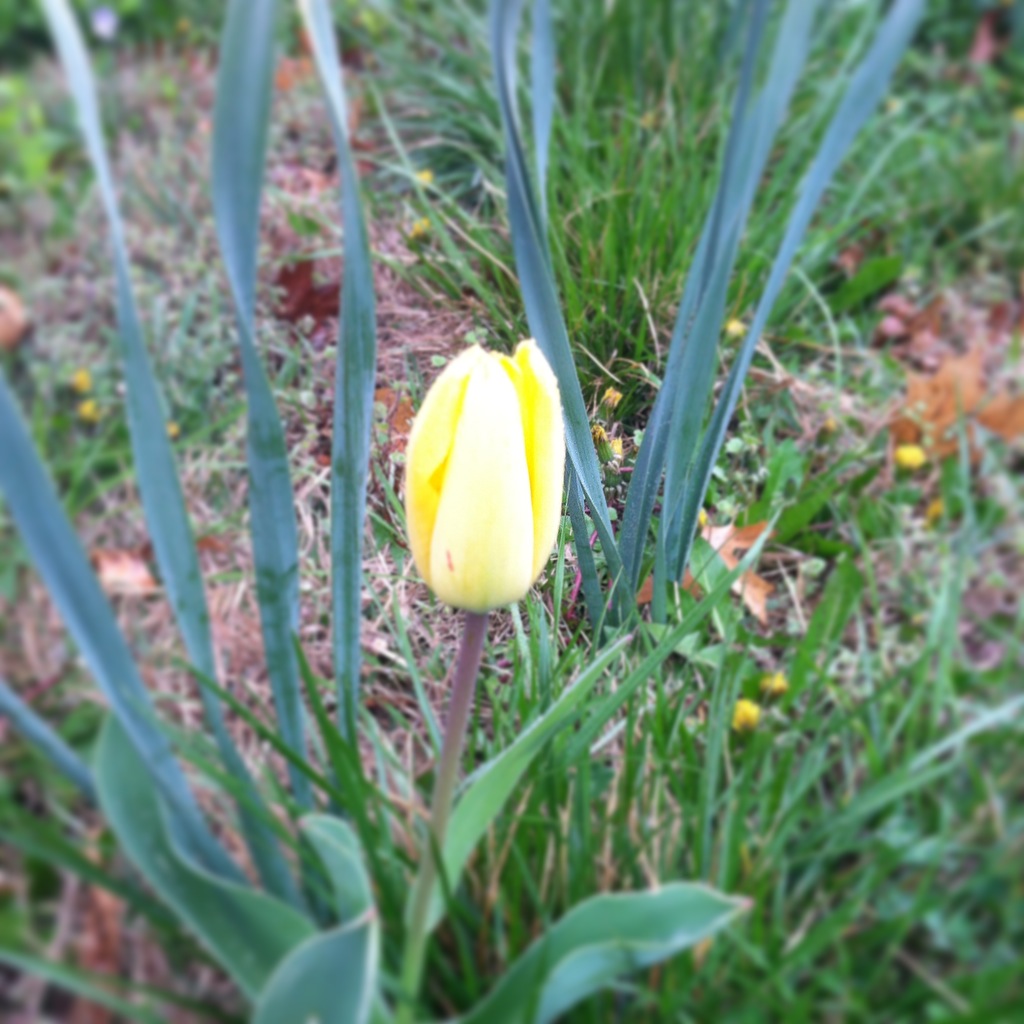 We had a few yellow Tulips pop up this year. Every once in a while the Tulips in our yard bloom, but they are usually red.