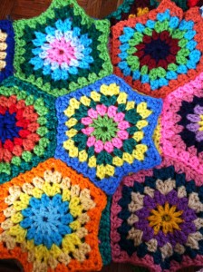 In happier news I started yet another throw. This time it is a bright hexagon throw, and I’m about half-way finished with it. I started this one over Christmas break in hopes that maybe I would finish it during the break. It is a nice, cheery project on this grey Winter day.