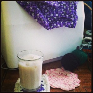 Finally I had all of the pieces ready to put together. I made a homemade iced coffee, and got to work finishing up the dress.