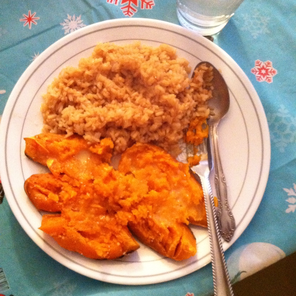 Rice with Soy Sauce, and Baked Sweet Potatoes