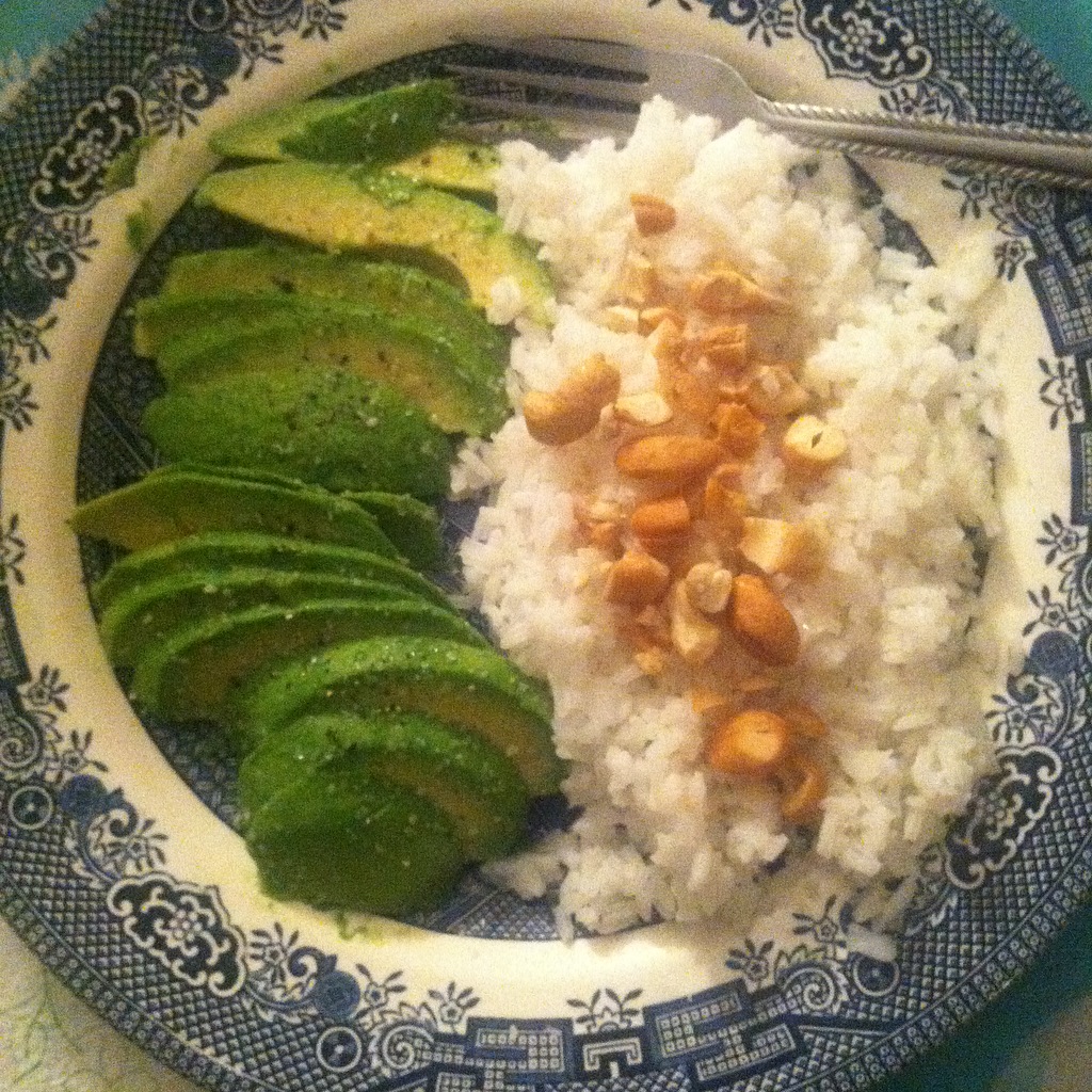 Avocados, Rice with Chopped Cashews