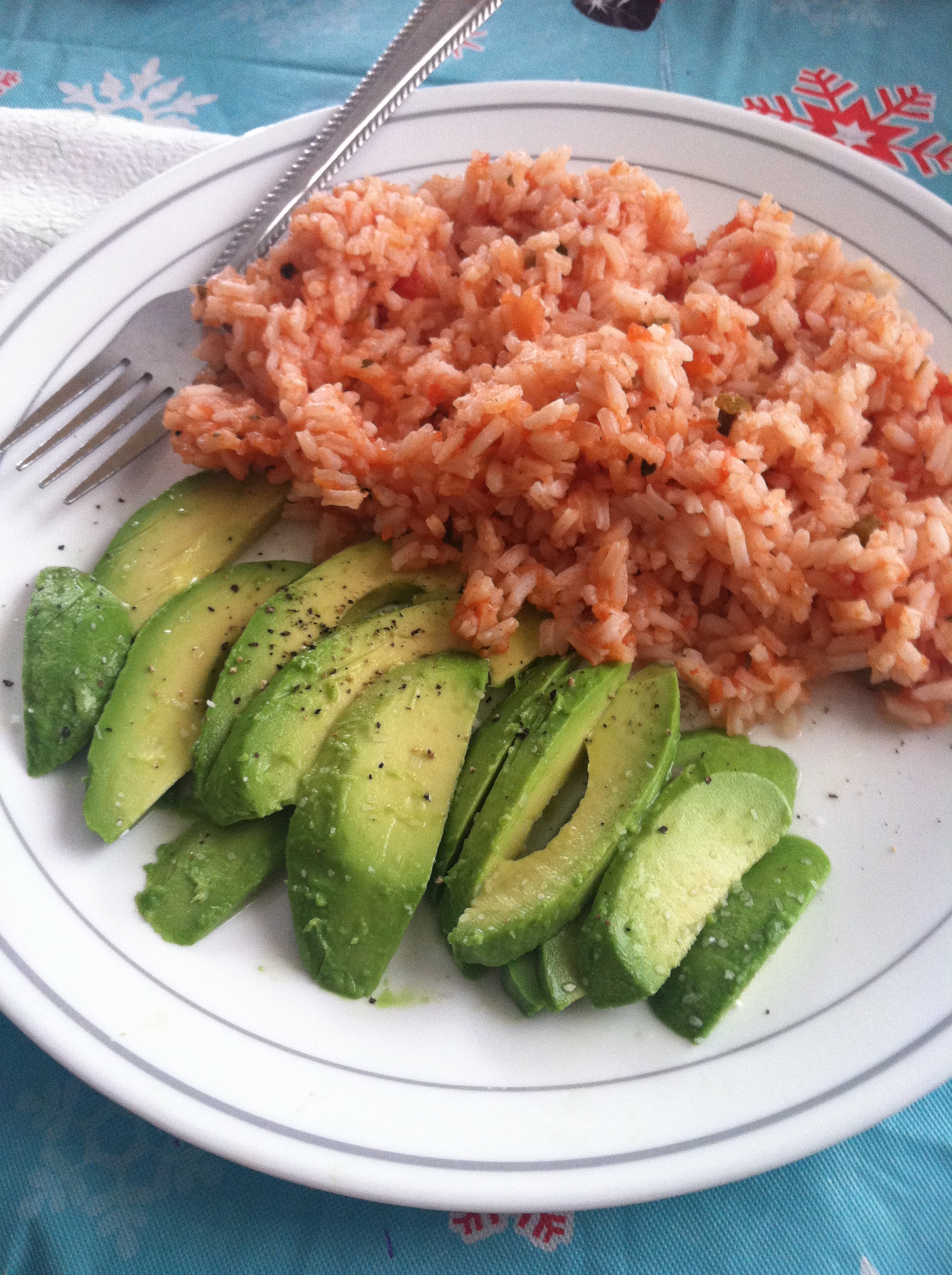 Salsa Rice with sliced Avocados
