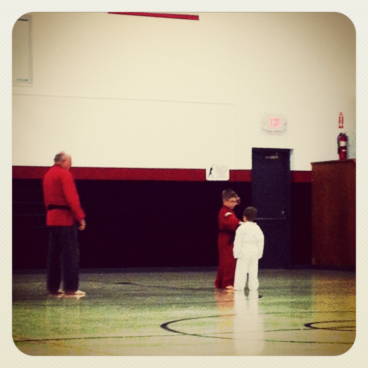 He did his form perfectly, and he did his one steps so well too. He was awarded his yellow belt!