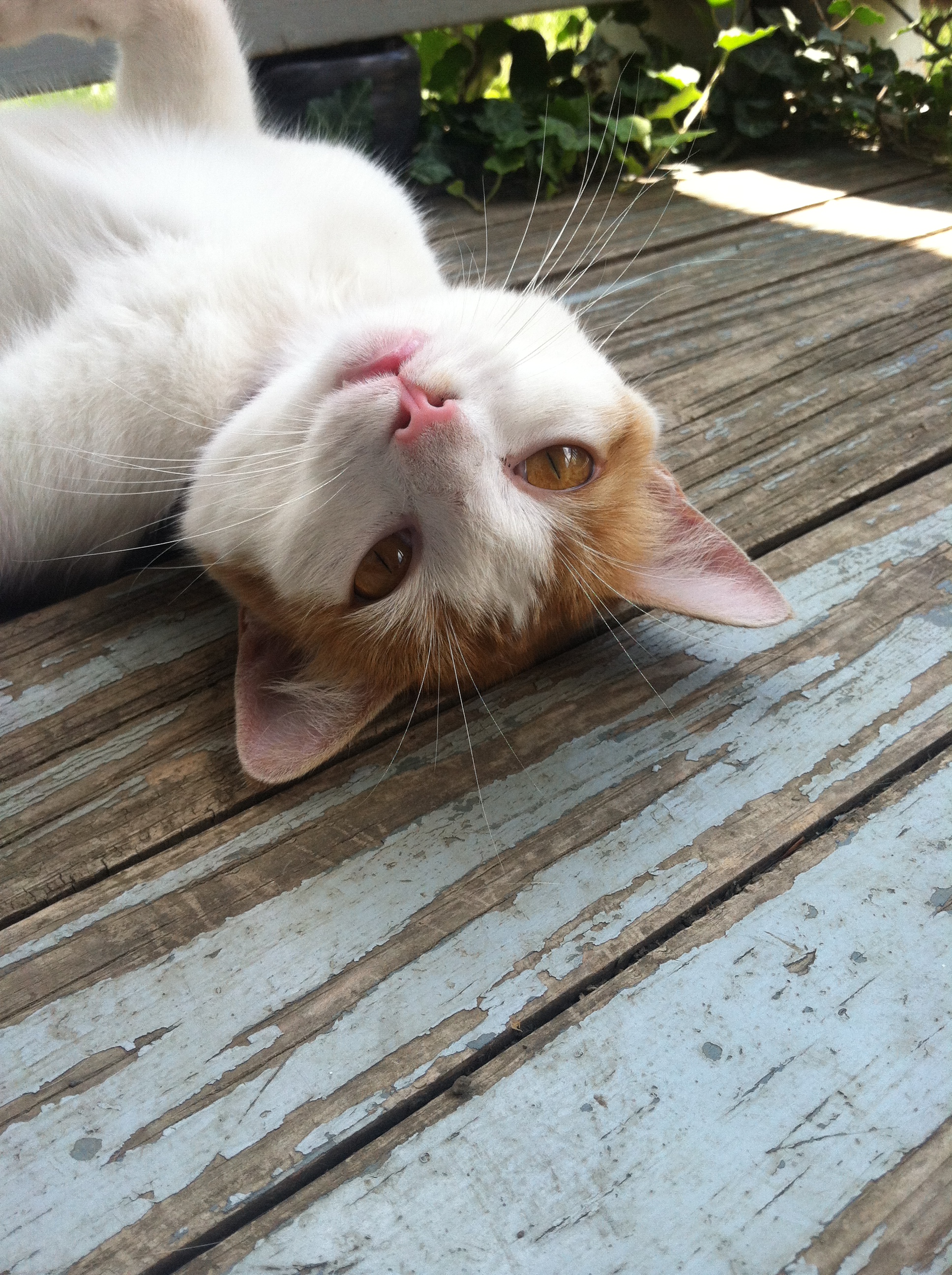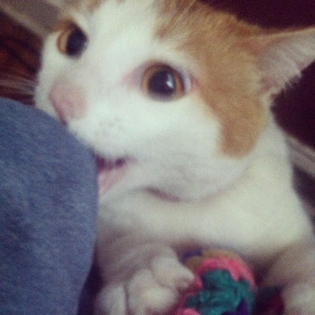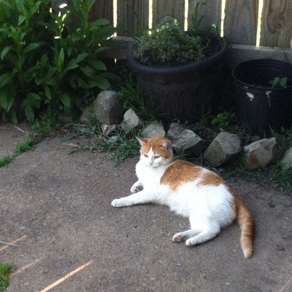 We love our shy and sneaky little Lula-Mae. After two years she is still pretty skittish and shy, and she loves to sneak in the house and meow at you until she gets a treat. She gets along fantastically well with Miss Mia, and she still climbs the fence and meows at people passing by.
