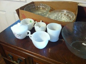 The sale was great, and we came home with so many fantastic deals. Agnes loves her clothes, and the boys love the table too. I still need to hang up my new pictures, but the Pyrex has already found a home in my kitchen.