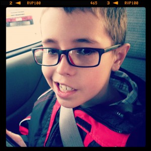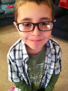Thade got his new glasses last night, and he loves them. I think he looks adorable too. Dylan is already asking when he can get glasses too.