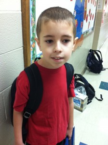 I got Dylan to his classroom, and at his table just before the bell rang. He was so happy to be there, he started working on a little worksheet right away, and he wasn’t even a bit upset when I waved good-bye. My little man is growing up.