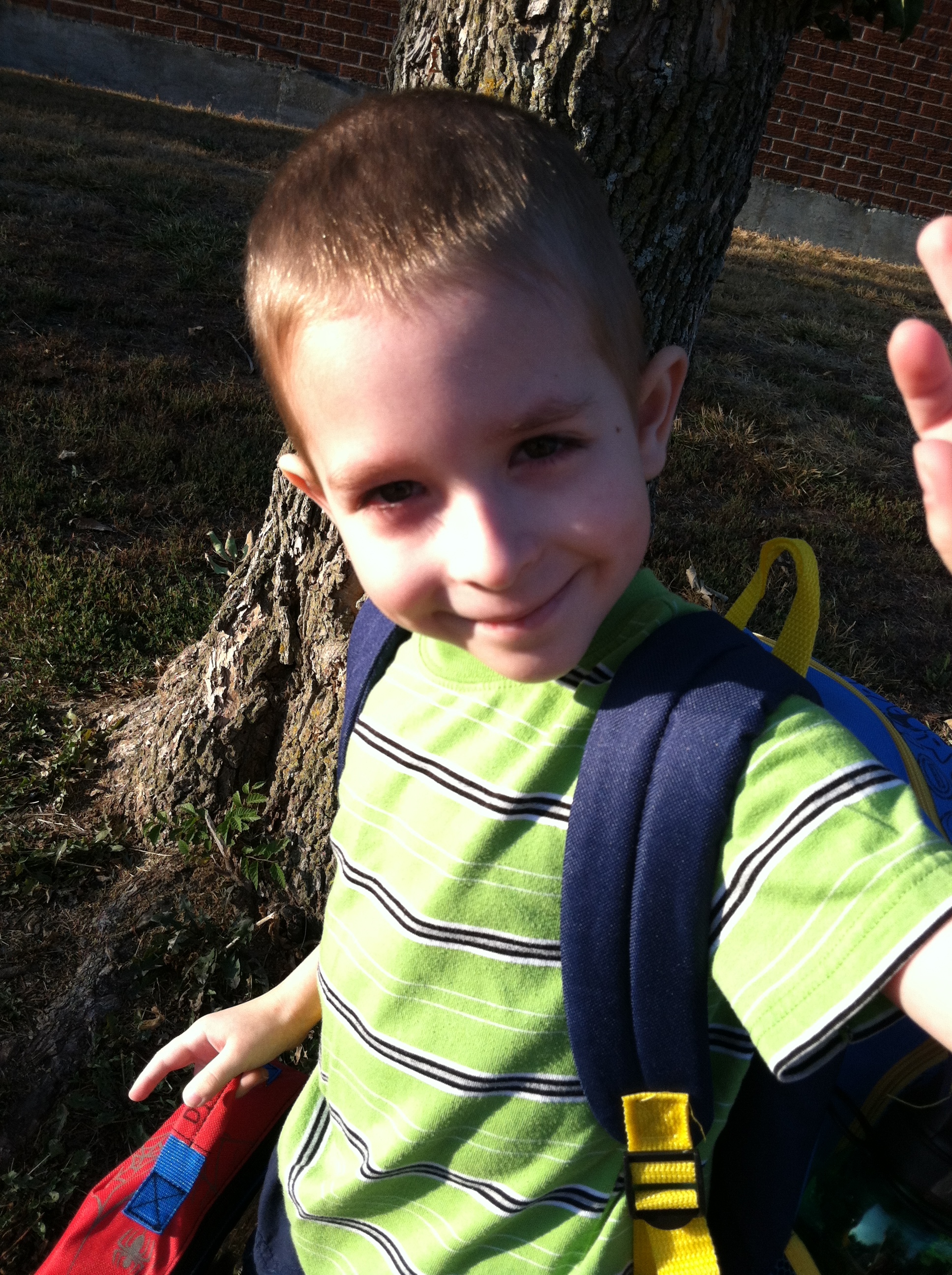 He was so excited! He seriously could not wait for his first day at kindergarten. He already knew his way around the school, and he smiled and said hi to everyone that he passed.