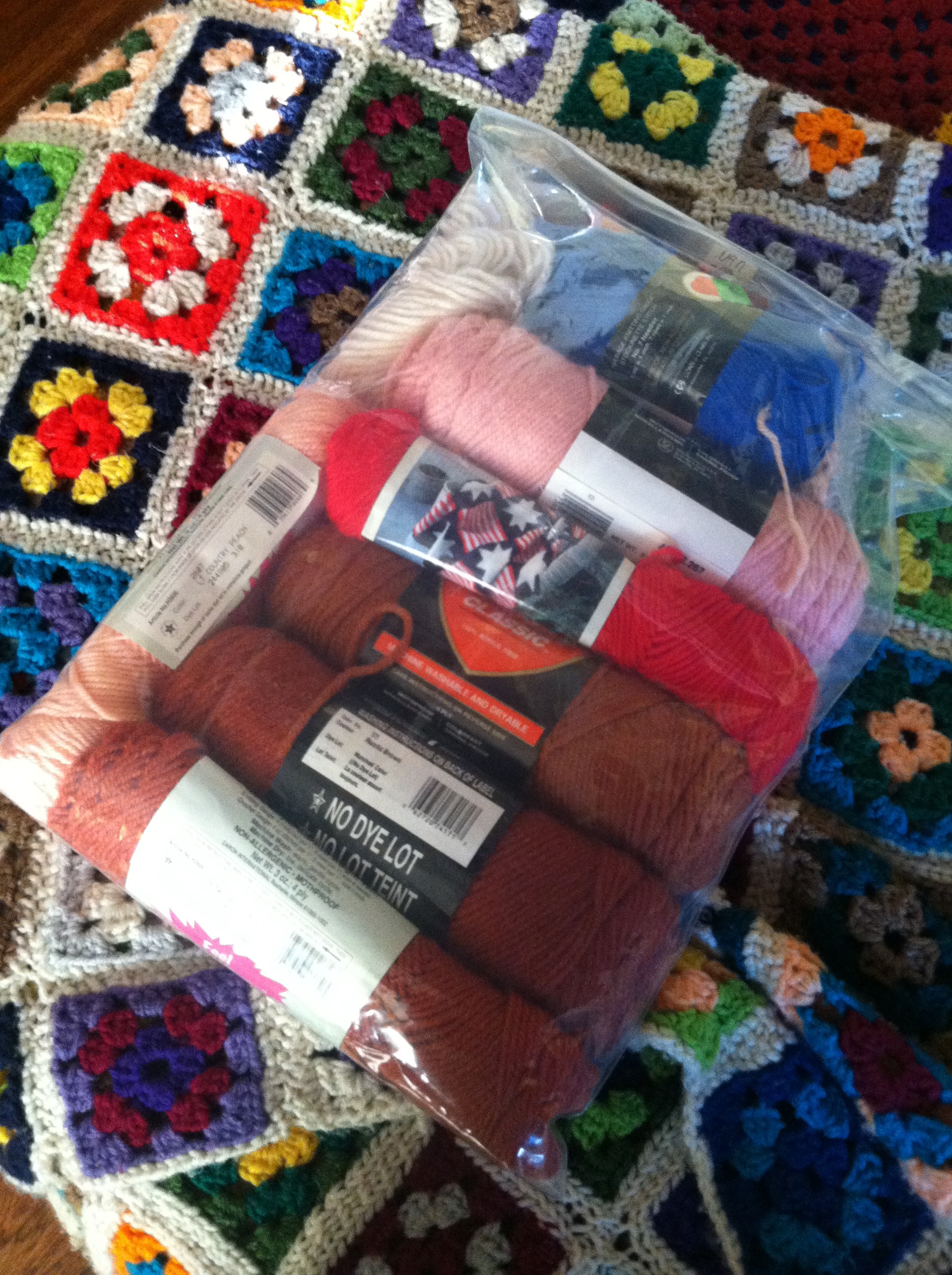 We visited our gardening buddy at the hospital, he is doing well and recovering from surgery. We also hit a few yard sales on the way home. I came back with a big bag of yarn for $5, and seven dessert plates for fifty cents.