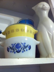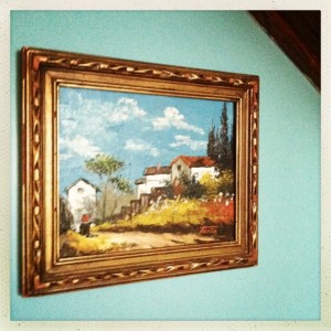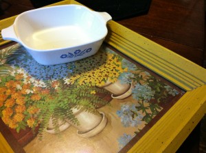 At the sale at the high school I found another little dish that matches my Corningware. I also picked up a cute little framed print for the living-room.