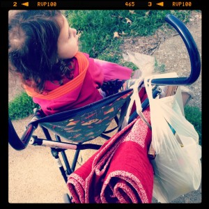 On the second day of the sales, we had thought about having a sale. I priced lots of kids clothes, but in the end we decided that it might be more fun to get out and shop. James had to work that afternoon, but he took the kiddos and I out in the morning. The weather was amazingly beautiful for the first day of Autumn. Agnes was excited to go, but the boys wern’t too happy about the road trip.