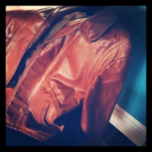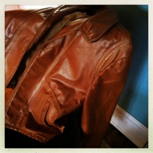 I spotted this awesome vintage leather jacket that didn’t have a price on it. I thought it looked super-cool, and when I asked the price, the lady said how about $1.00. Oh yeah! It fits perfectly too.