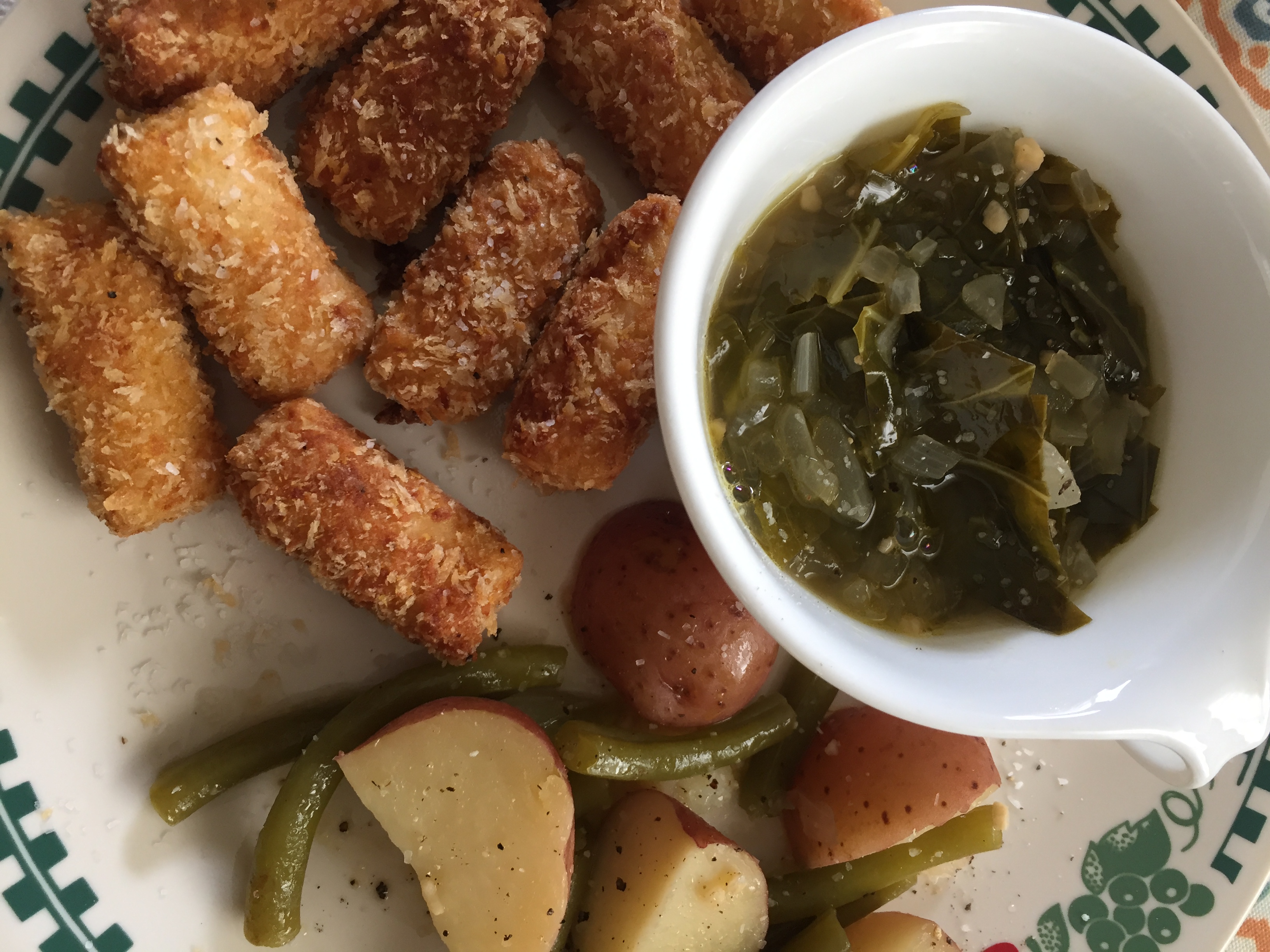 I tried my hand at making Panko Fried Tofu. The kids really liked this dish, and ate about half of mine, along with their panko fried chicken dinner.