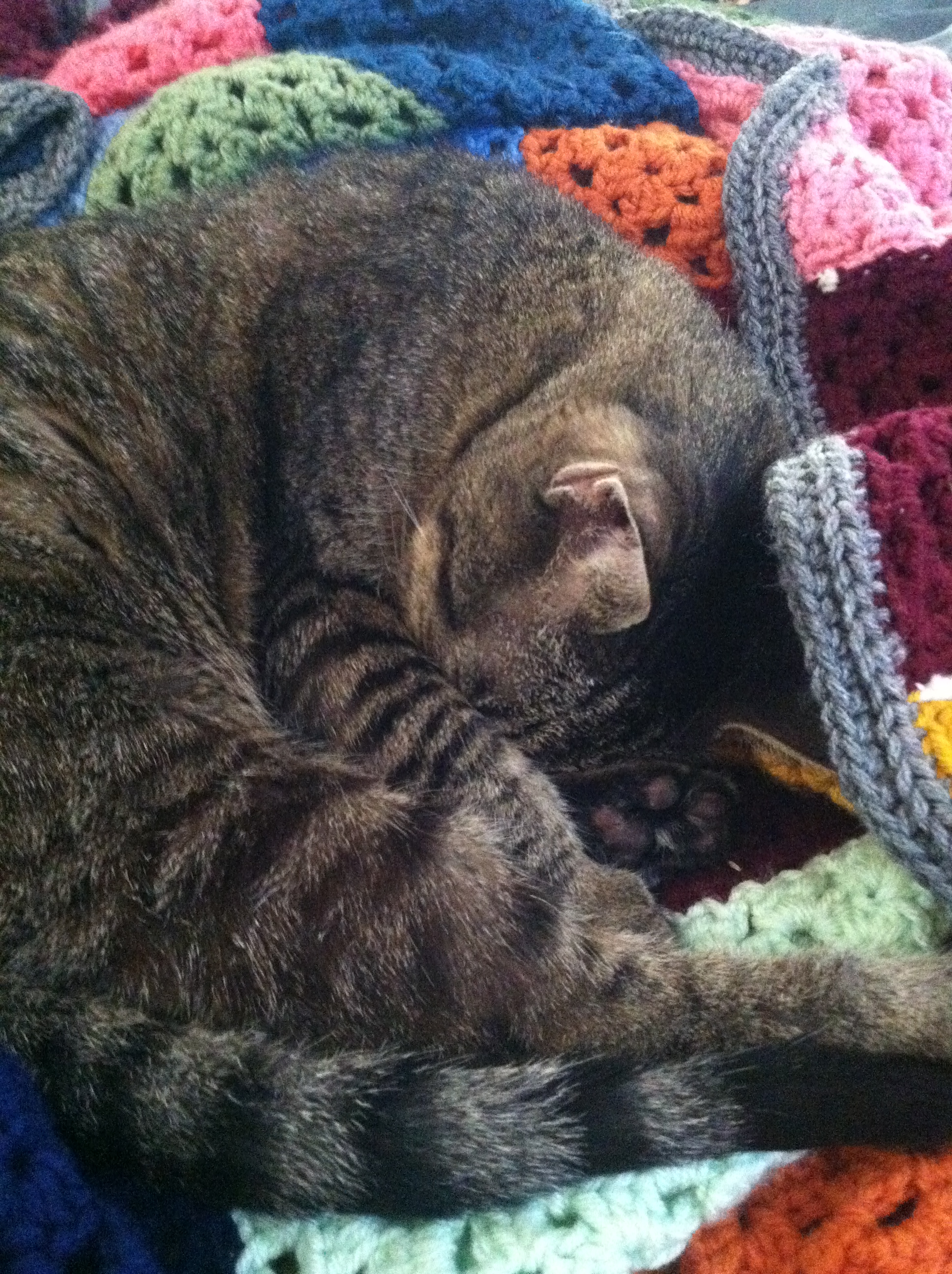 The big kitty has been keeping me company. He has his own blanket to snuggle up on the couch. The big guy just celebrated his 15th birthday earlier this month. He celebrated be taking an extra long nap on the couch with me. He is a pretty cute little craft-buddy.