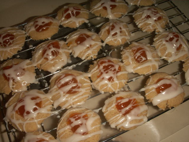 I made Peach Pie, Chocolate Bundt Cake, Butterscotch Brownies (thanks Shaunna), and Apricot Thumbprint Cookies too.