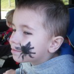 One of the activities this weekend was “Creepy Crawly Crafts” at the local community center. Our neighbors were helping out with the event, and I thought it sounded like a great activity for the boys. Thade couldn’t wait to get there, so we went a little earlier than I had planned. When we got to there, the place was packed with kids! There was well over 100 kiddos busy making crafts, snacks, or getting their face painted.