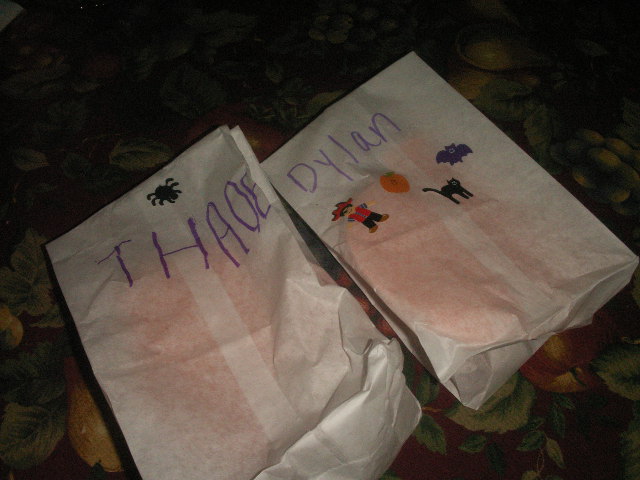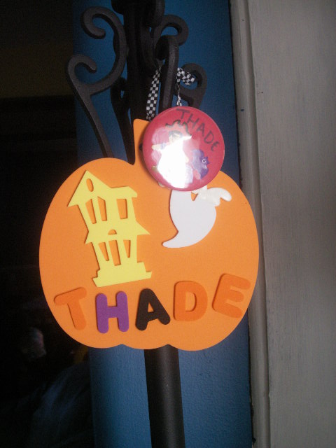 I thought the pumpkins would make cute decorations for our lamps. I think that Thade is going to take his to show and tell sometime this week.
