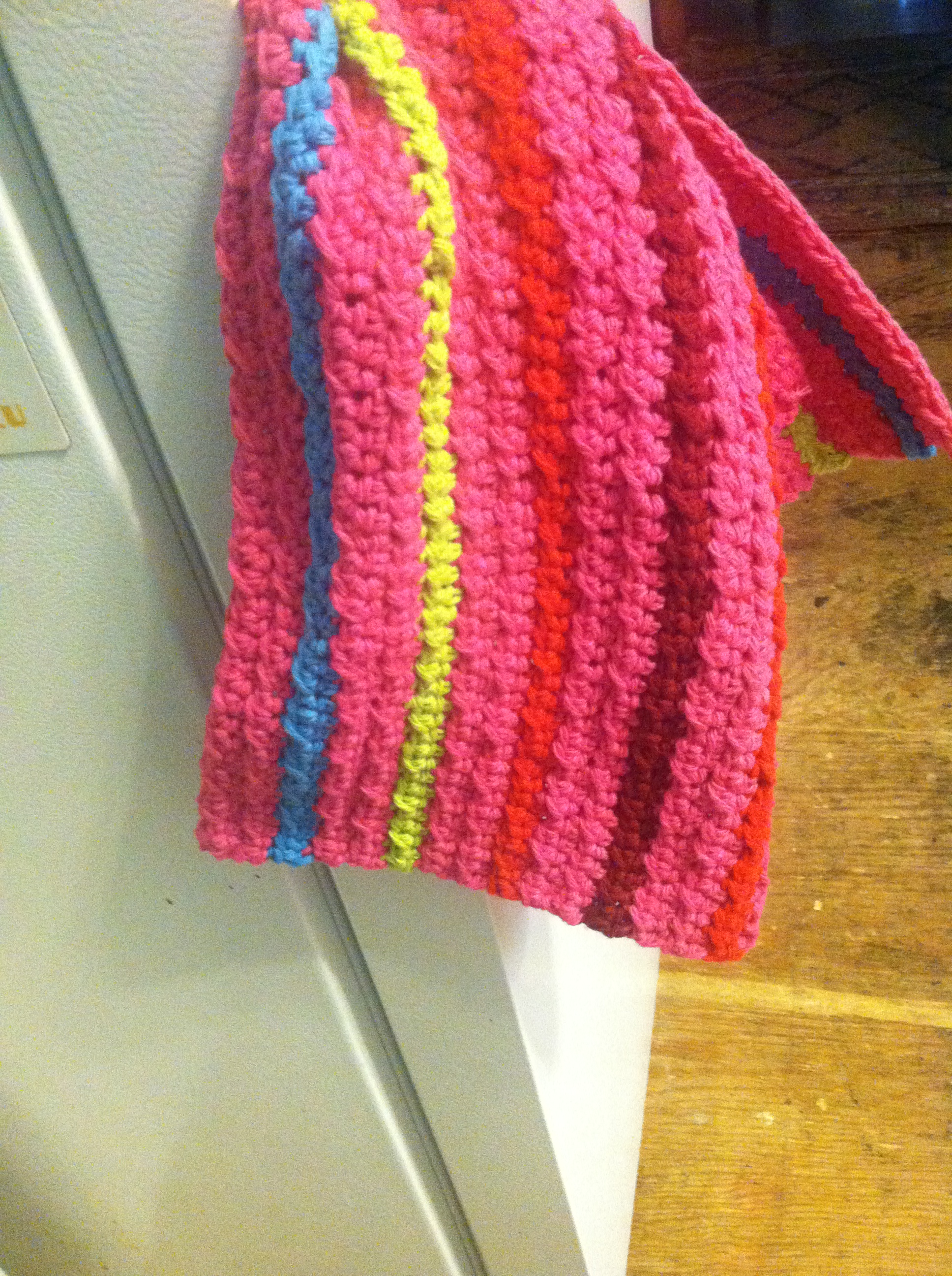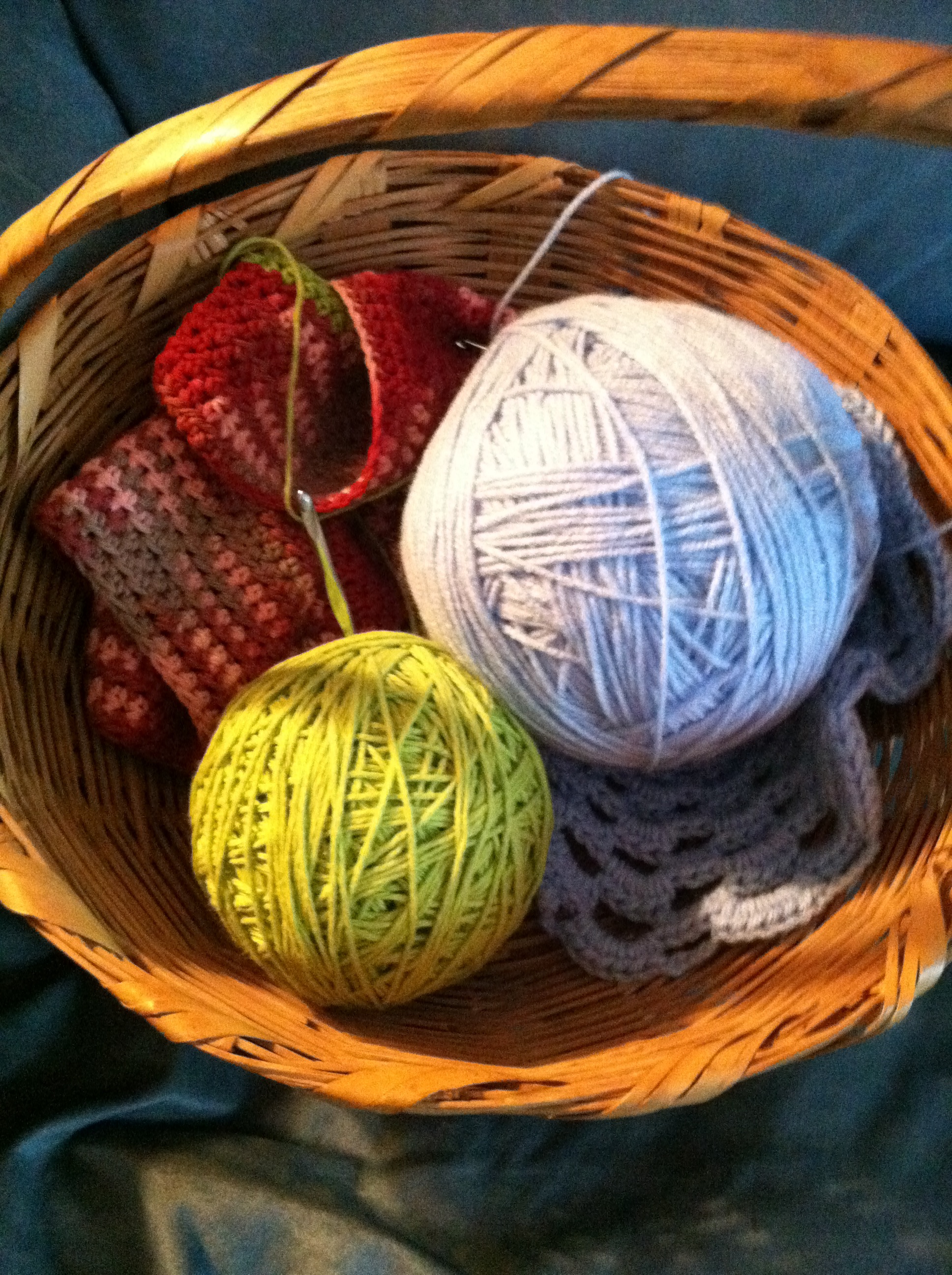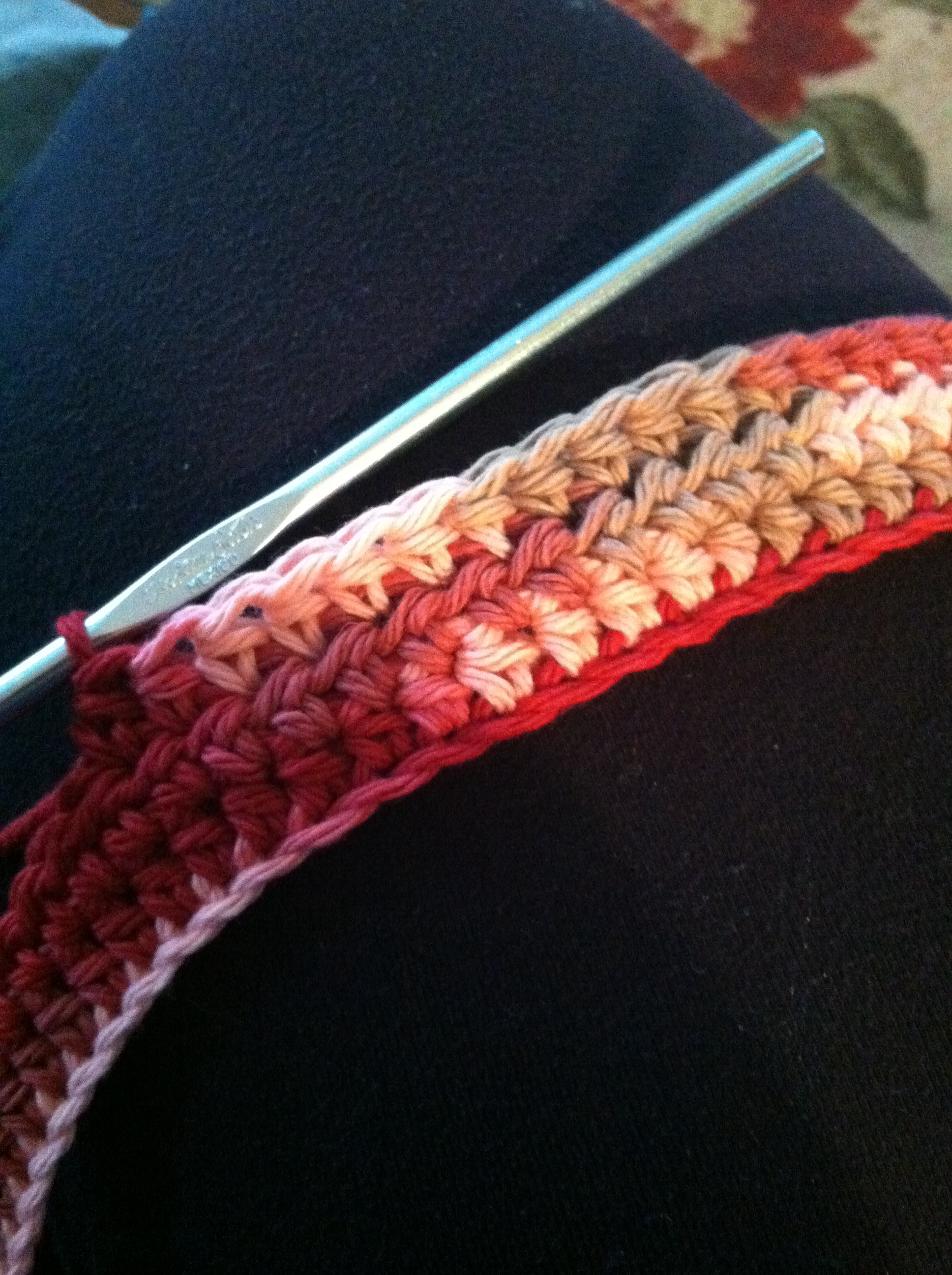 At the city-wide yard sale I picked up a random bag of yarn. There were a few colors of cotton, and I didn’t know just what to do with them.