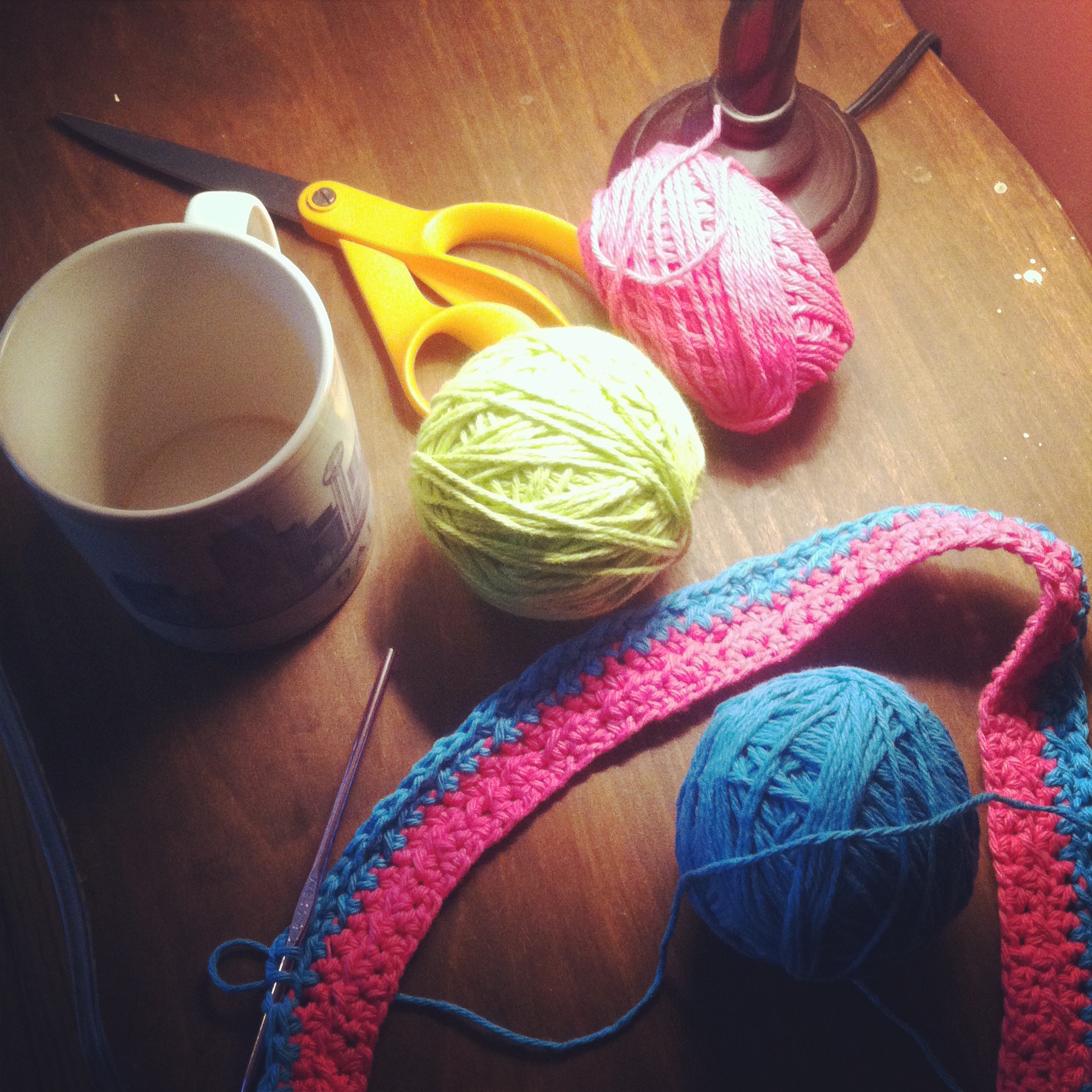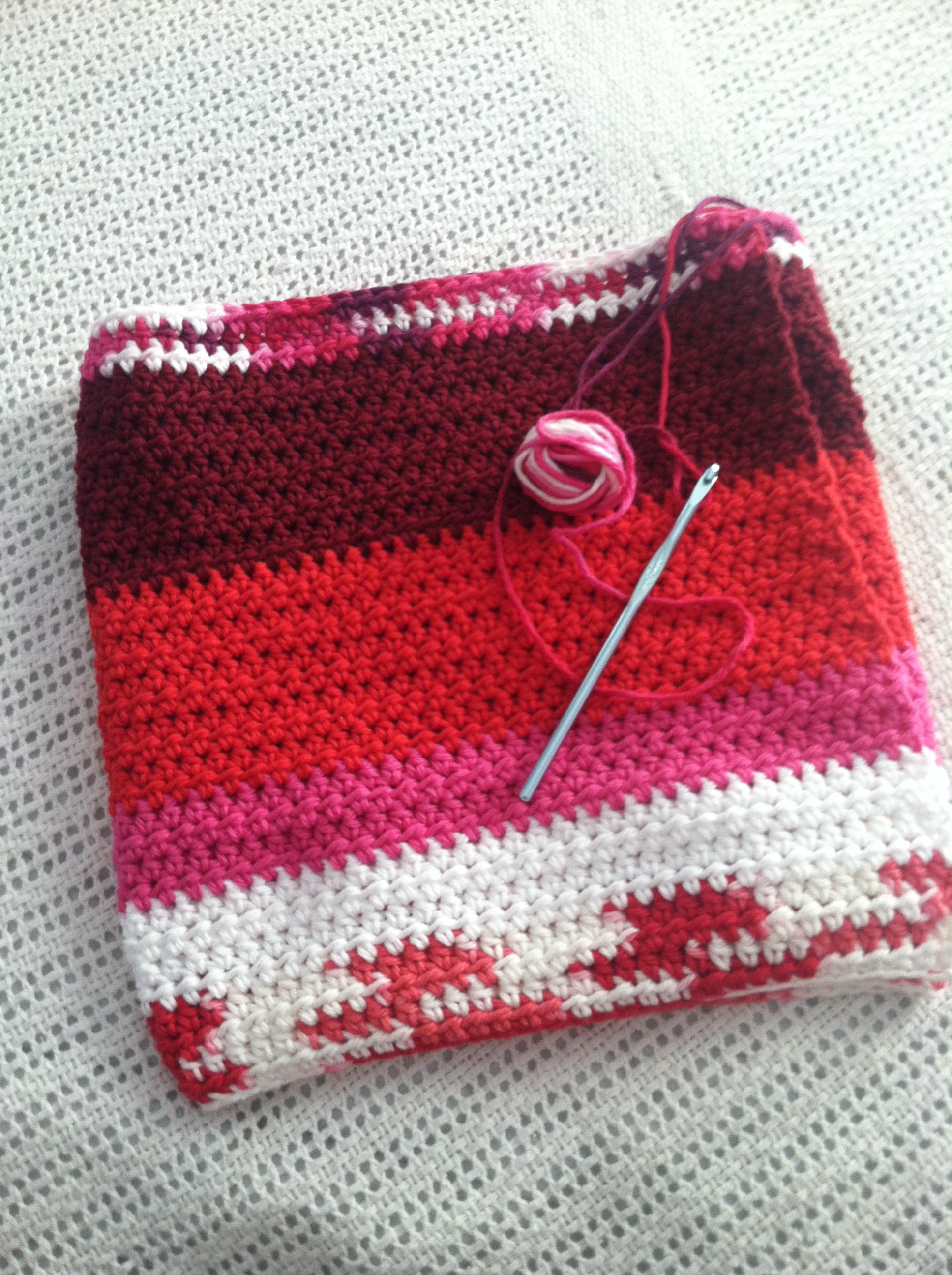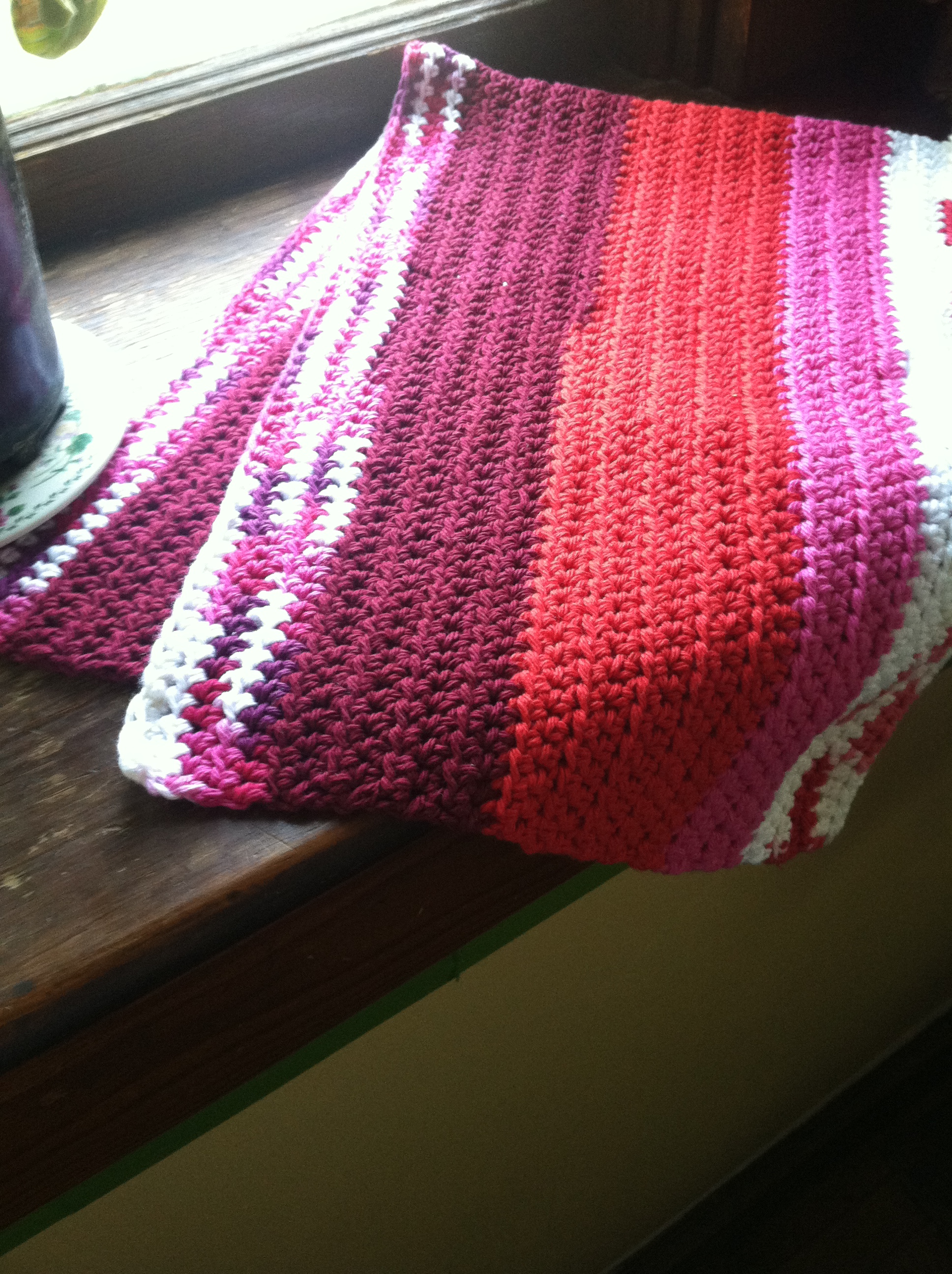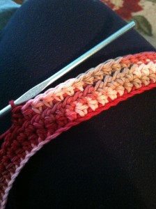 At the city-wide yard sale I picked up a random bag of yarn. There were a few colors of cotton, and I didn’t know just what to do with them.