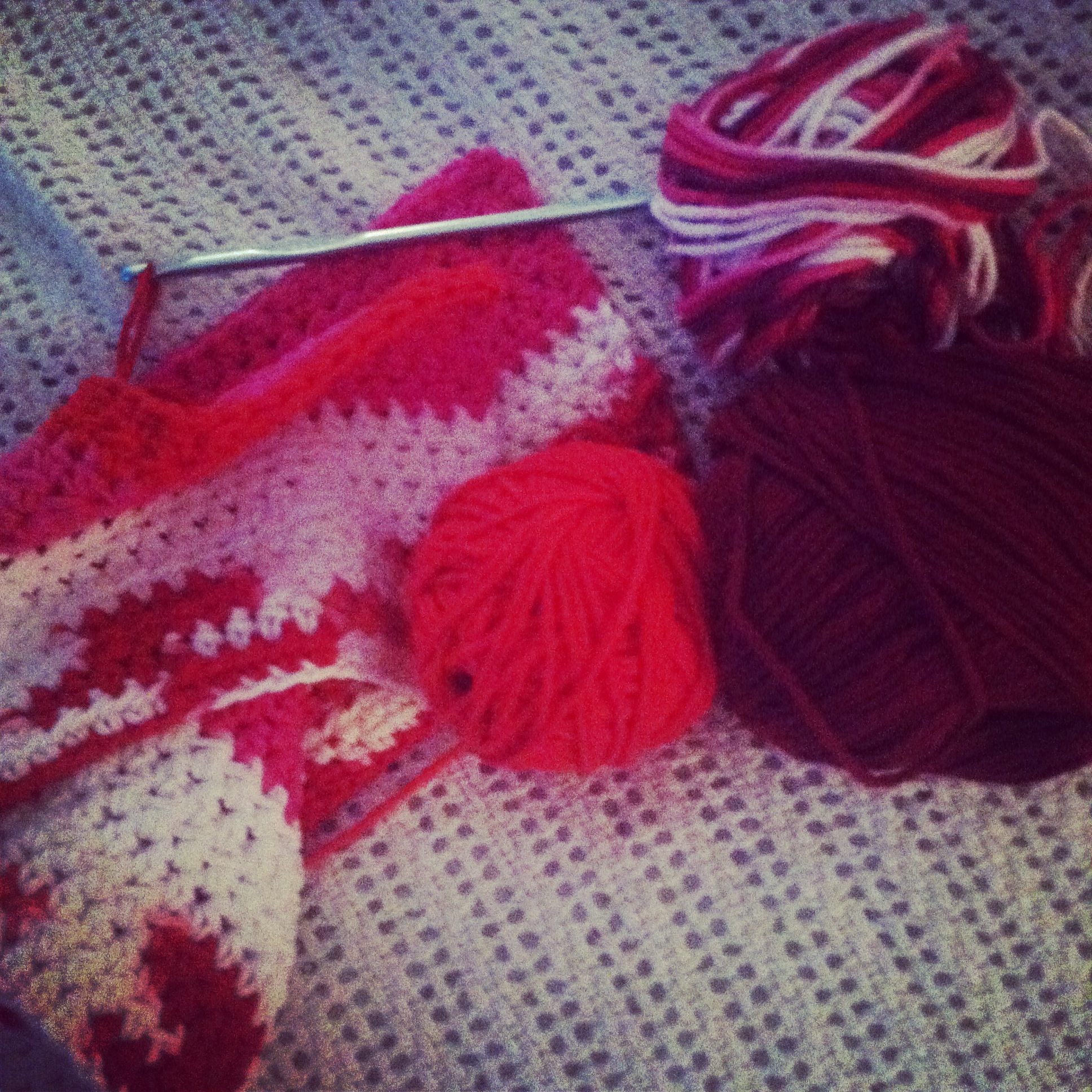 I had pink, maroon, and red cotton to work with. I also had some multi-hued pinks and reds to use too.