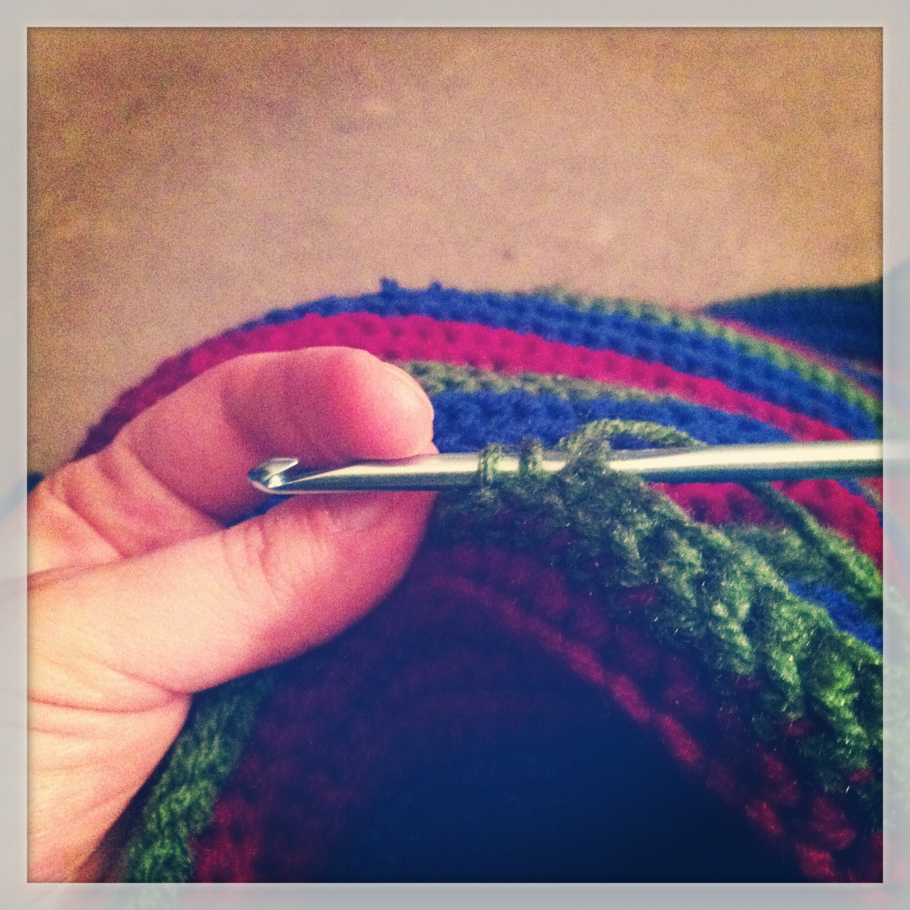I think I’ve been working on it for about six weeks. It is finally too big to carry along with me to crochet in the car.