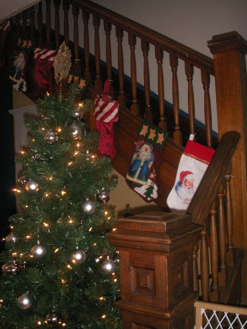 I love your tree by the banister, very pretty! And I love, love, love the woodwork in your house…love older houses for that.