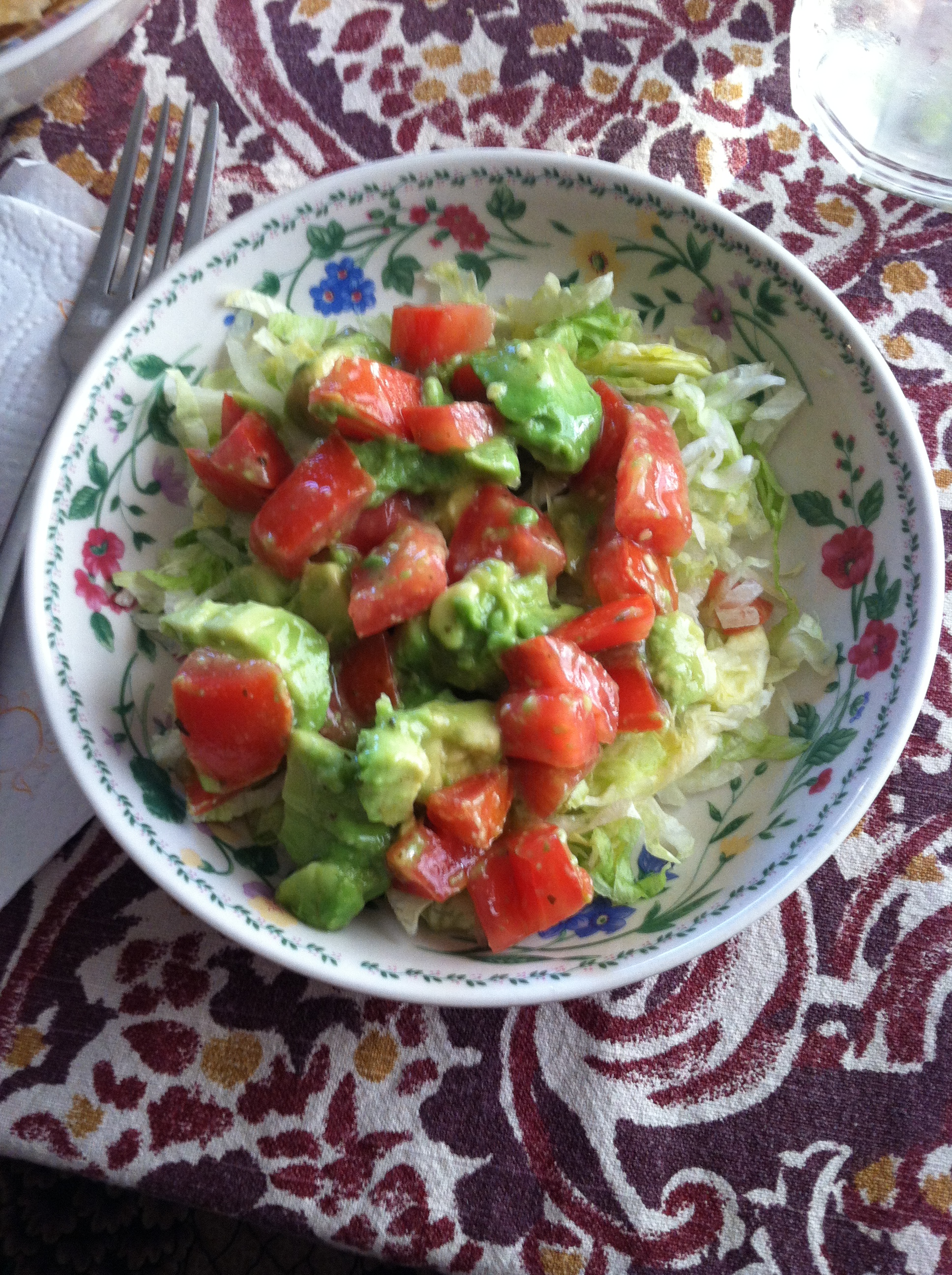 • 2/18/2015: Avocado and Roma Tomato Salad, Re-fried Beans with Cheese, and Tortilla Chips
