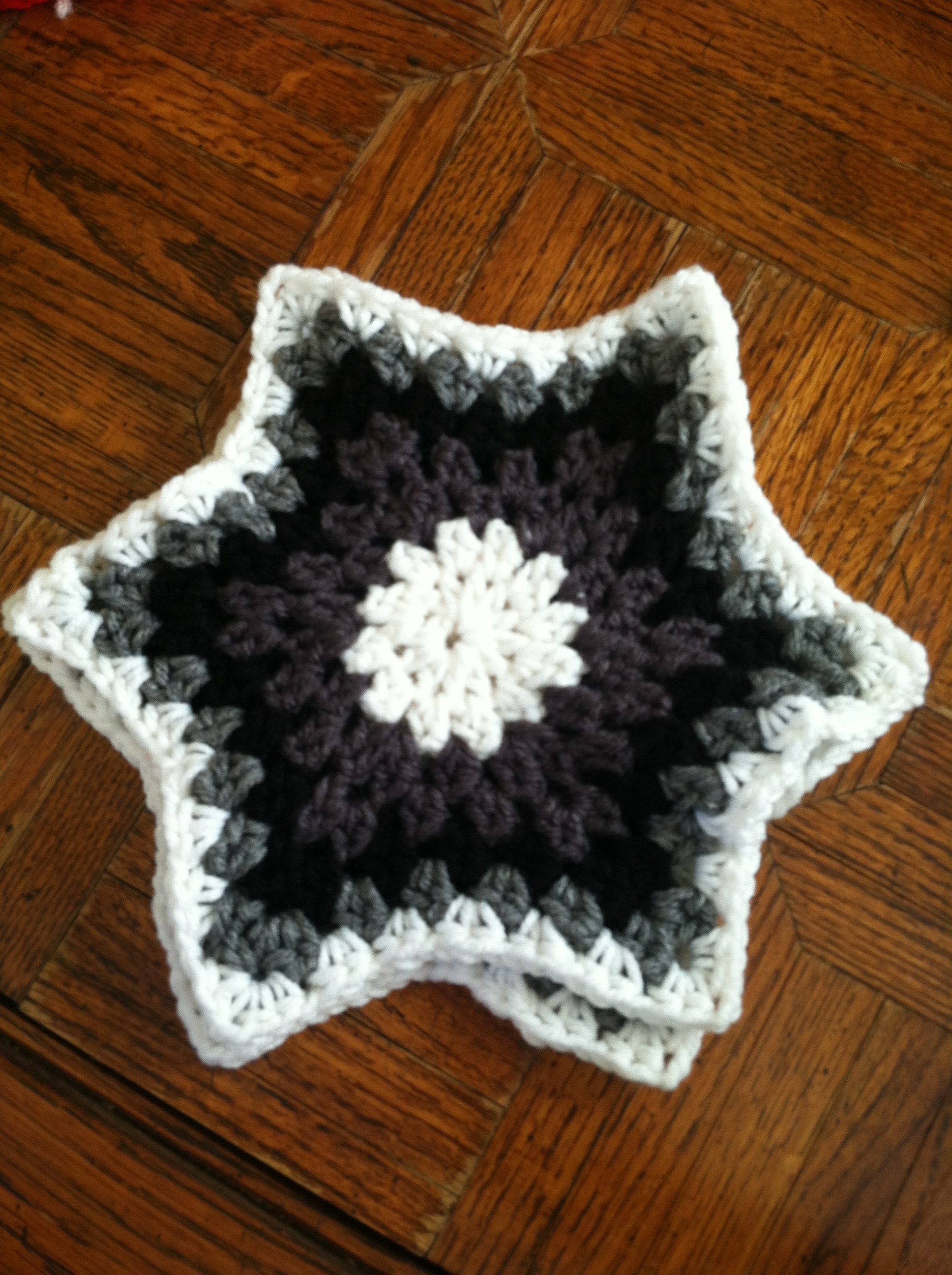I also started this hexagon afghan as a gift. I went to look for the dark charcoal yarn yesterday, and it was out too. Oh goodness, I am out of luck yarn shopping locally. Time to run over to MO, and maybe they will have it.