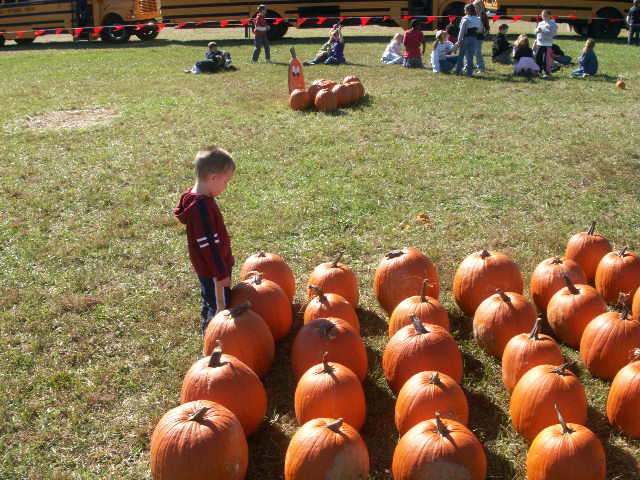 James was off work on Friday, so we gathered up the kids and went to a local Pumpkin Patch. Thade had been looking forward to the trip for quite a while, but once we got to the patch, he changed his mind. He wasn’t too cheerful, but the rest of us had a great time. The weather was just right for finding the perfect pumpkin.