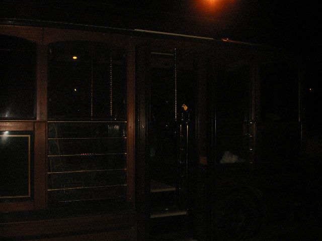 The Trolley features beautiful Green Glass windows, and pretty woodwork. I also love the brass handles, and rails. One day we’ll have to take the trolley ride during the day, but it is so much fun getting to see the sites at night.