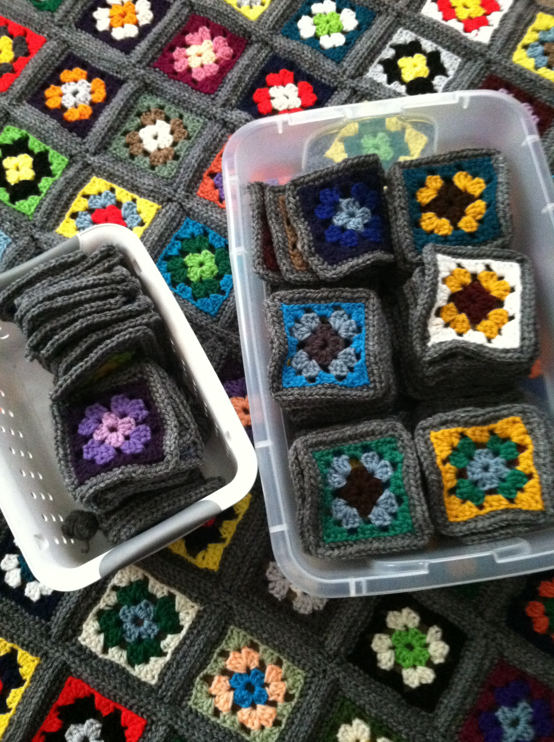 I have around eighty granny-squares left to crochet. That will put my count up to four hundred. Better get back to it, and crochet a bit while the boys are at school.