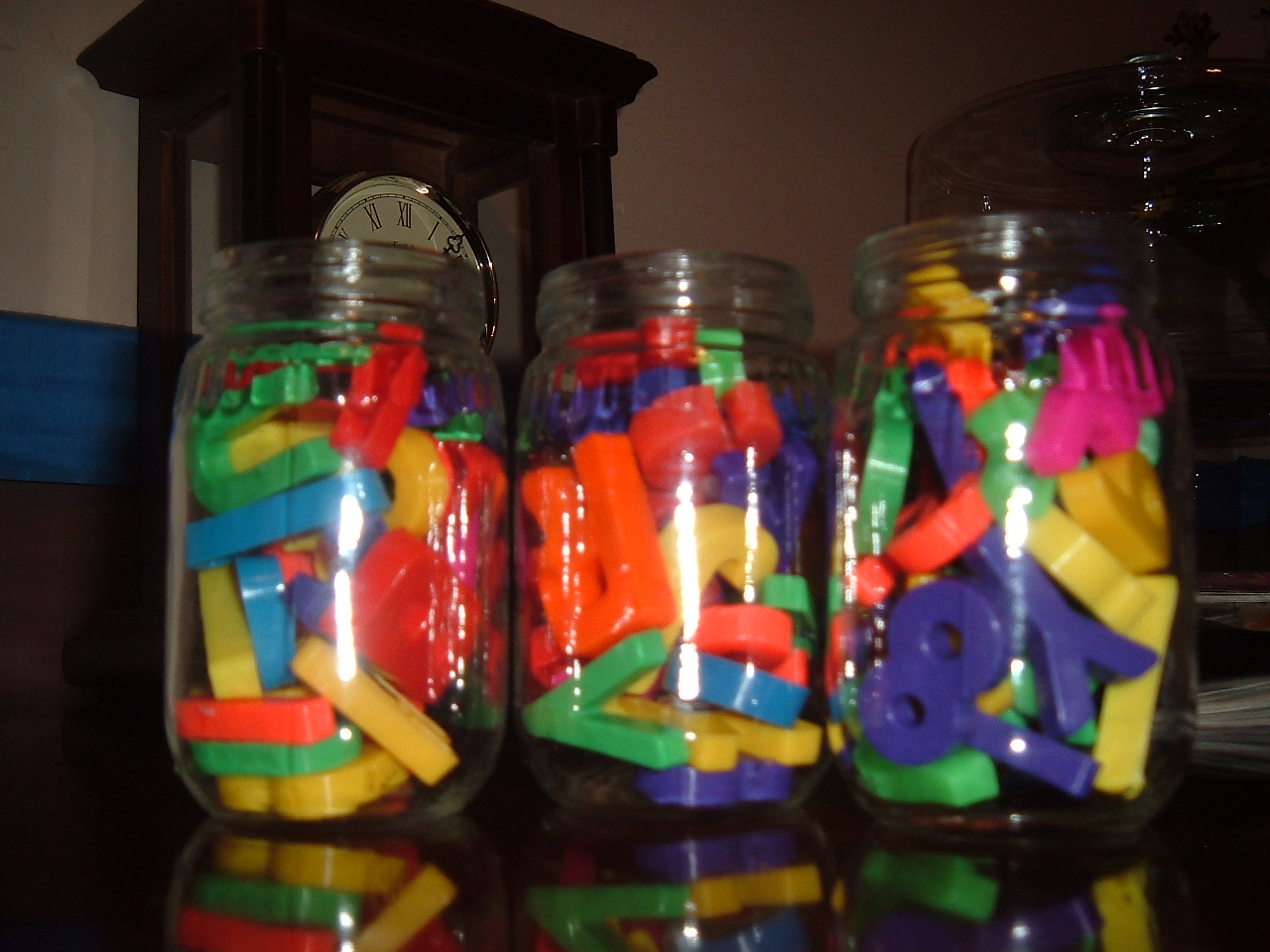 Glass is another item that I can’t throw away. Aesthetically it is very pleasing to my eye, and it is another great way to organize your home. I’ve reused a large glass jar to store (ahem) girly supplies in the upstairs bathroom, and a parfait glass for the downstairs bathroom. Vases also make great containers to store kitchen supplies in.