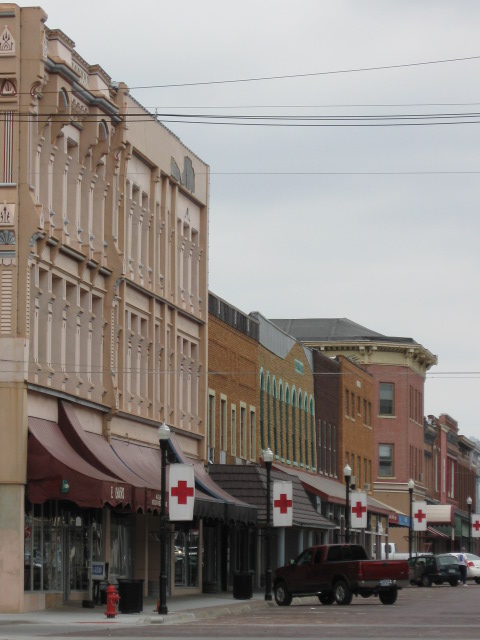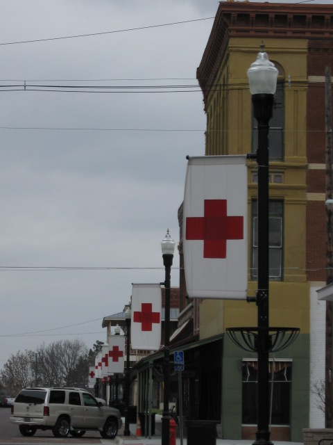 I wonder if it is Red Cross month, or if they are doing Spring Storm awareness. I thought all of the Red Cross flags looked really cool downtown 🙂