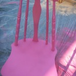 The kitchen chair got several coats of Hot Pink Watermelon Spray Paint, and looks so cute! I’m now thinking of painting the mis-matched kitchen set in bright pop art colors.