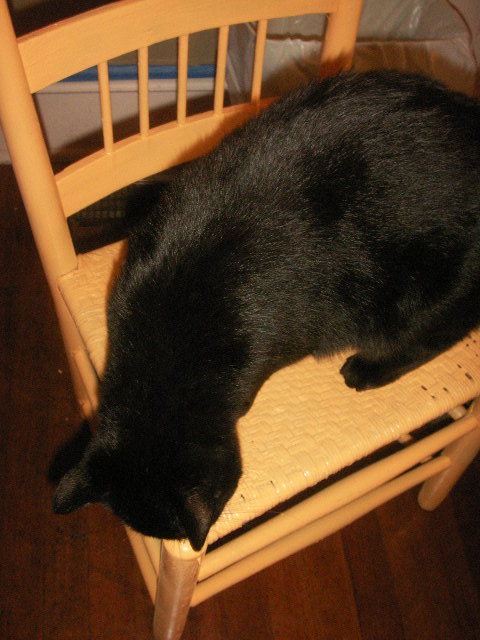 The orange paint looks great, and I think the kitty looks adorable hanging out on it too. I moved the chair back to the front porch, and now I can’t wait to decorate for Halloween.