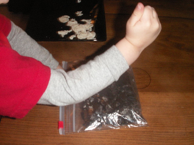 - Aluminum Foil Cupcake Liners, Ice Cream Scoop, 2 Butter Knives, Plastic Wrap, Microwave safe bowl, Heavy Duty Quart sized Ziploc Bag, Cookie Sheet, and Ambitious Toddler (for the cookie smashing)