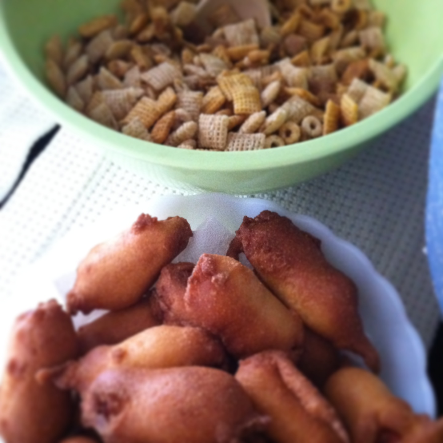 More stockpile goodies. Chex Mix and Homemade Mini Corn Dogs. Perfect lunch for a Football watching lazy Sunday.