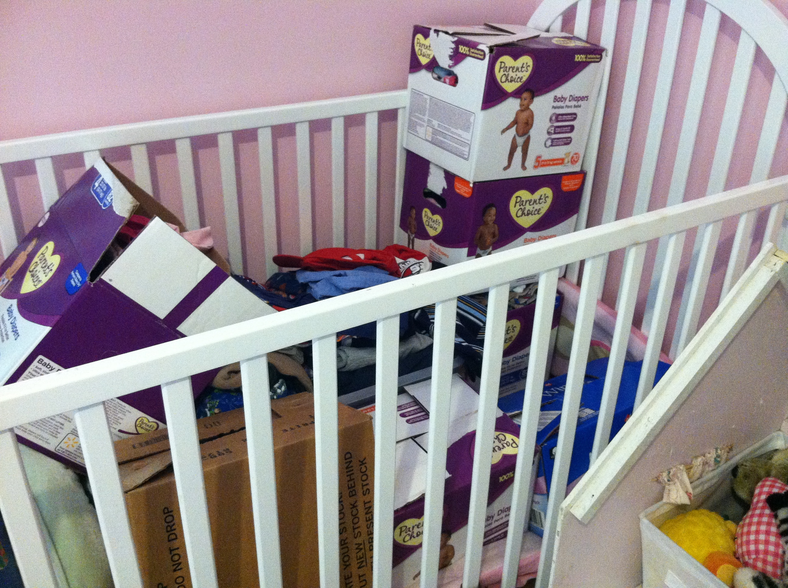 In July, I sold the crib, and seriously went through the kids baby/toddler/kids clothes, and pared them down.