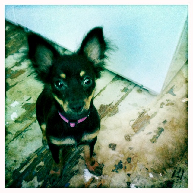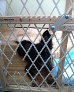 here she is trying to look cute and innocent. She chewed through her puppy-gate.