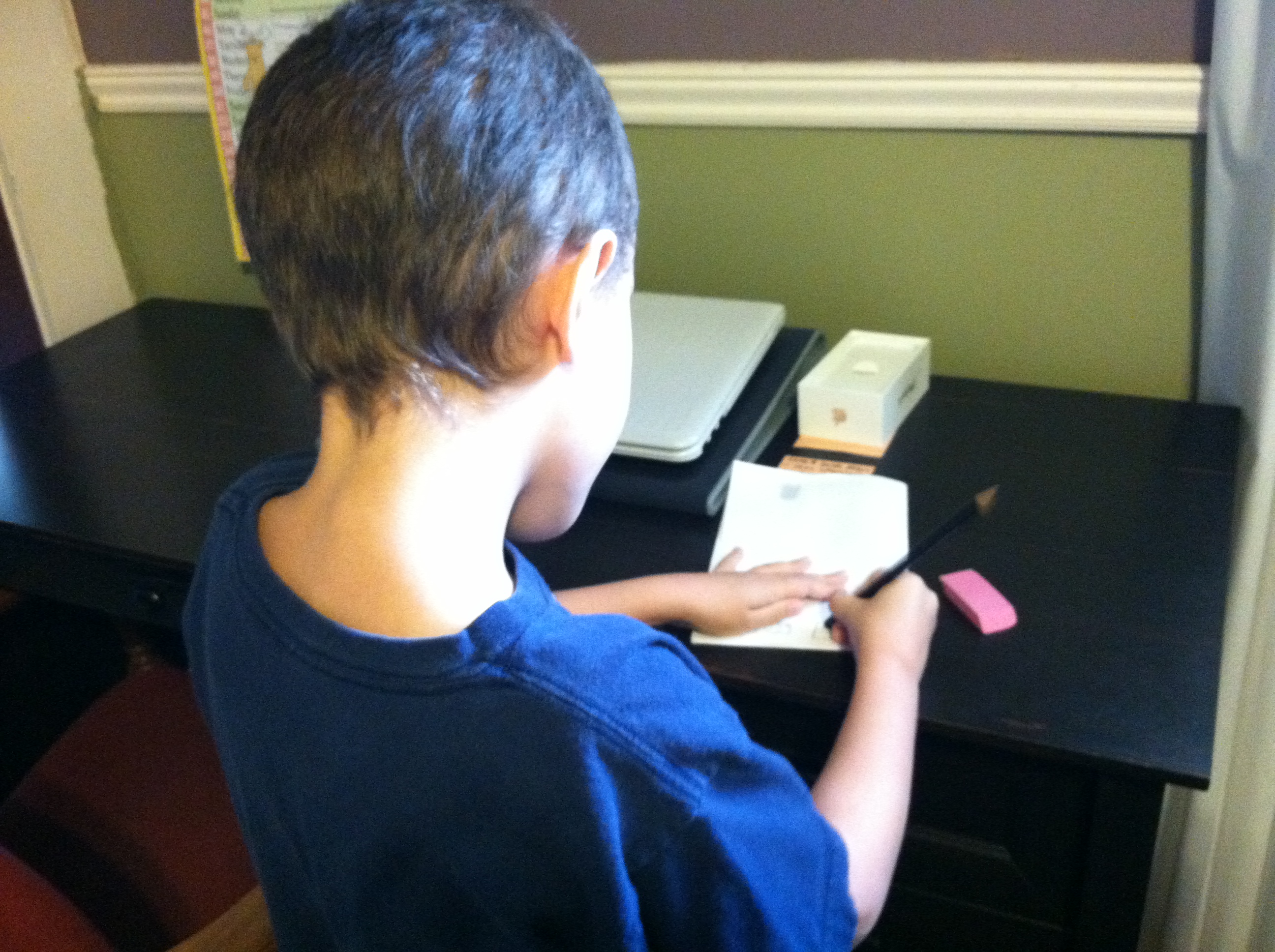 Thade kept busy drawing his comic books.