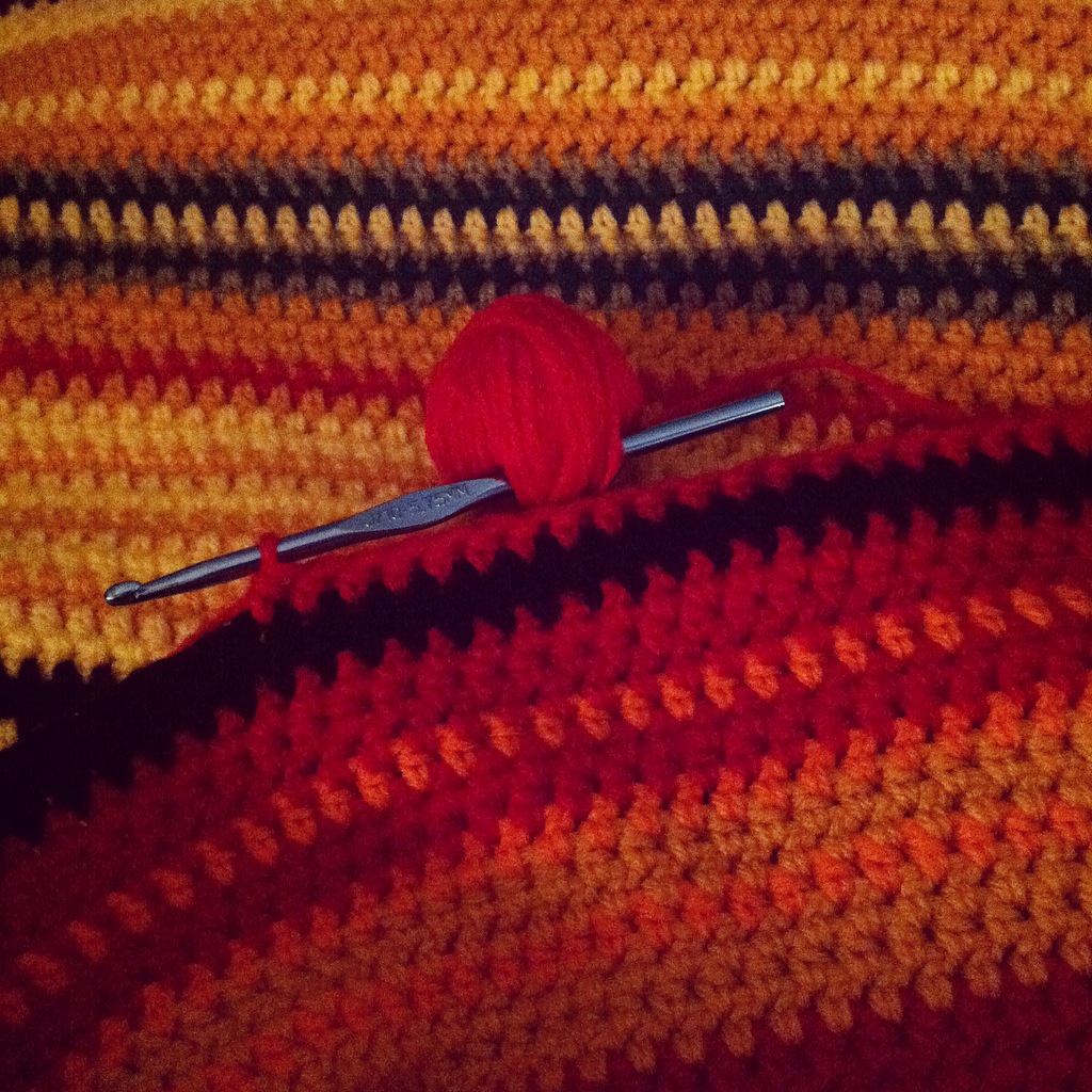 I’ve reached the half-way point on the 2017 Temperature Blanket. It is already pretty darn big. I think that by the time that all of the crocheting is done it will easily fit our king-sized bed.